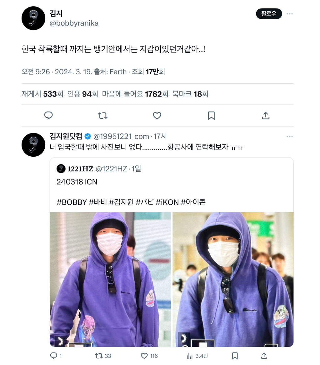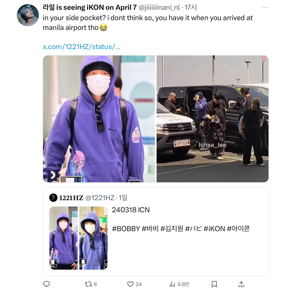 곧바로 한국 홈마 제보가 옴