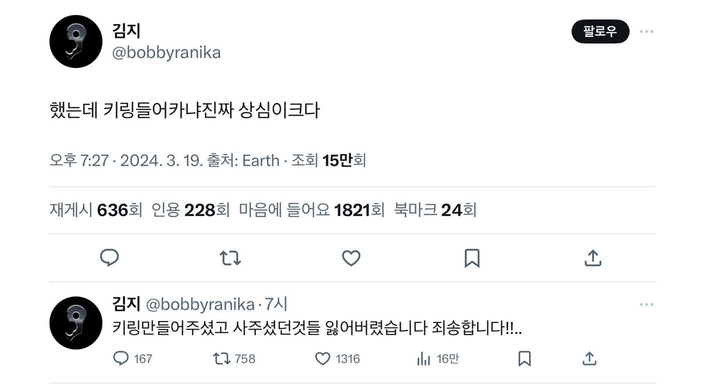 걍 정말로 지갑 못찾고 끝난게 웃겨서 흥미돋….