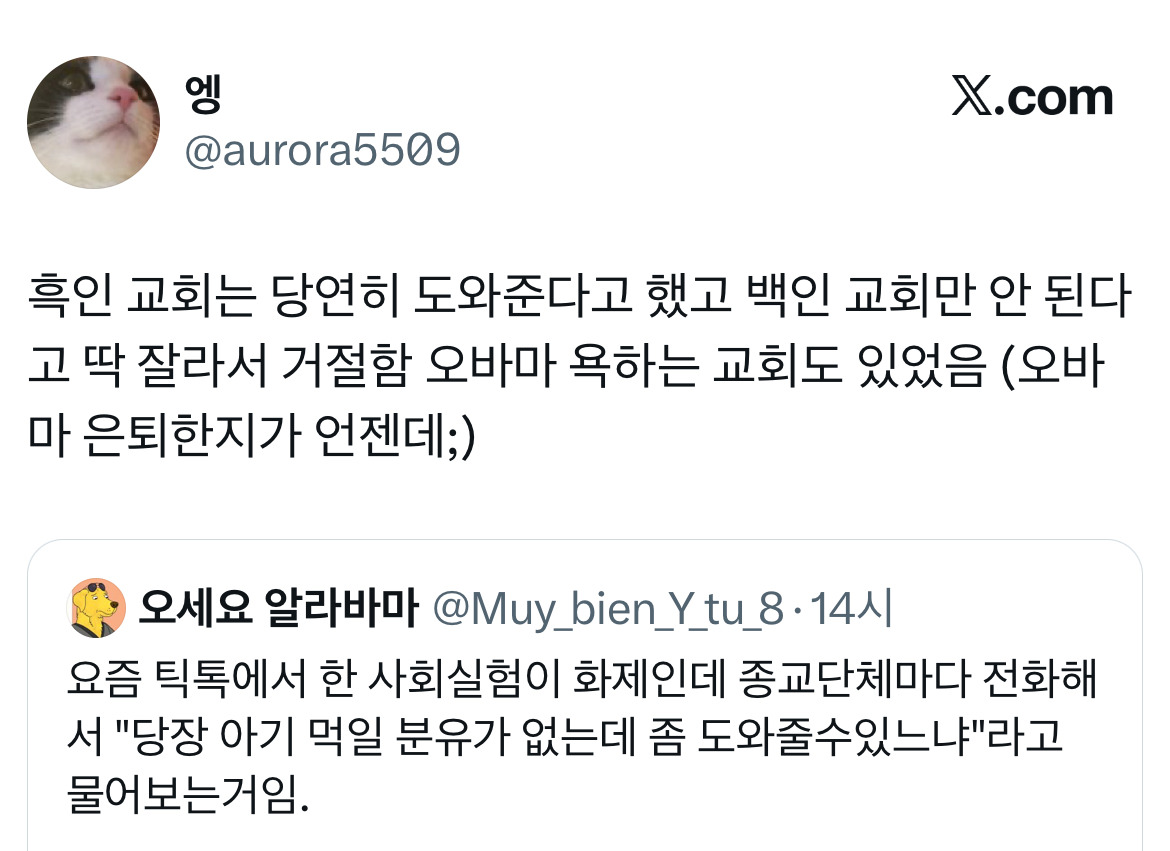 [스크랩] [흥미돋]요즘 틱톡에서 한 사회실험이 화제인데 종교단체마다 전화해서 "당장 아기 먹일 분유가 없는데 좀 도와줄수있느냐"라고 물어보는거임.twt