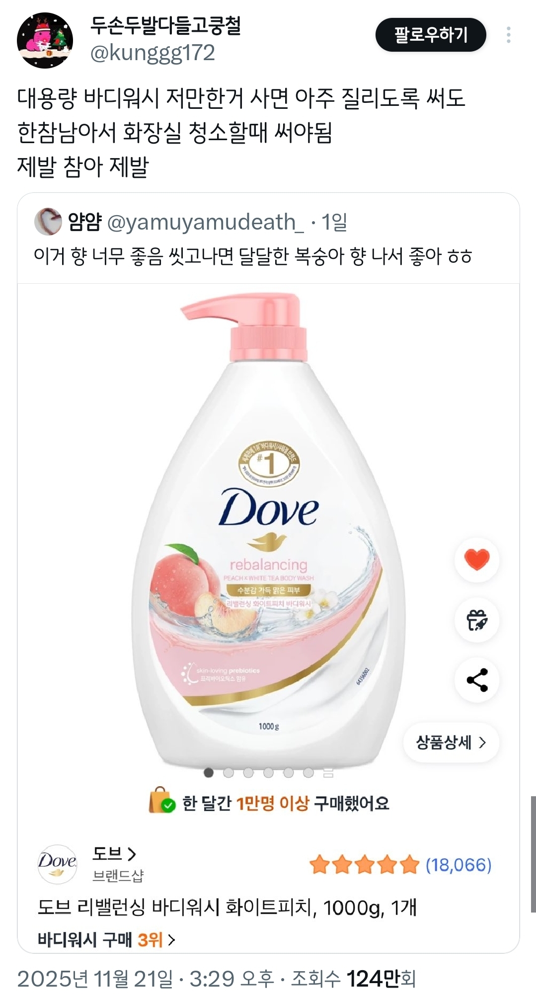 작성자배뽈록퉁퉁퉁사후르 작성시간 25.11.24 도브 한통 1년 넘게 써ㅋㅋㅋ 바꾼지가 언젠지.. 질리지도 않아.. 비누보다 가성비