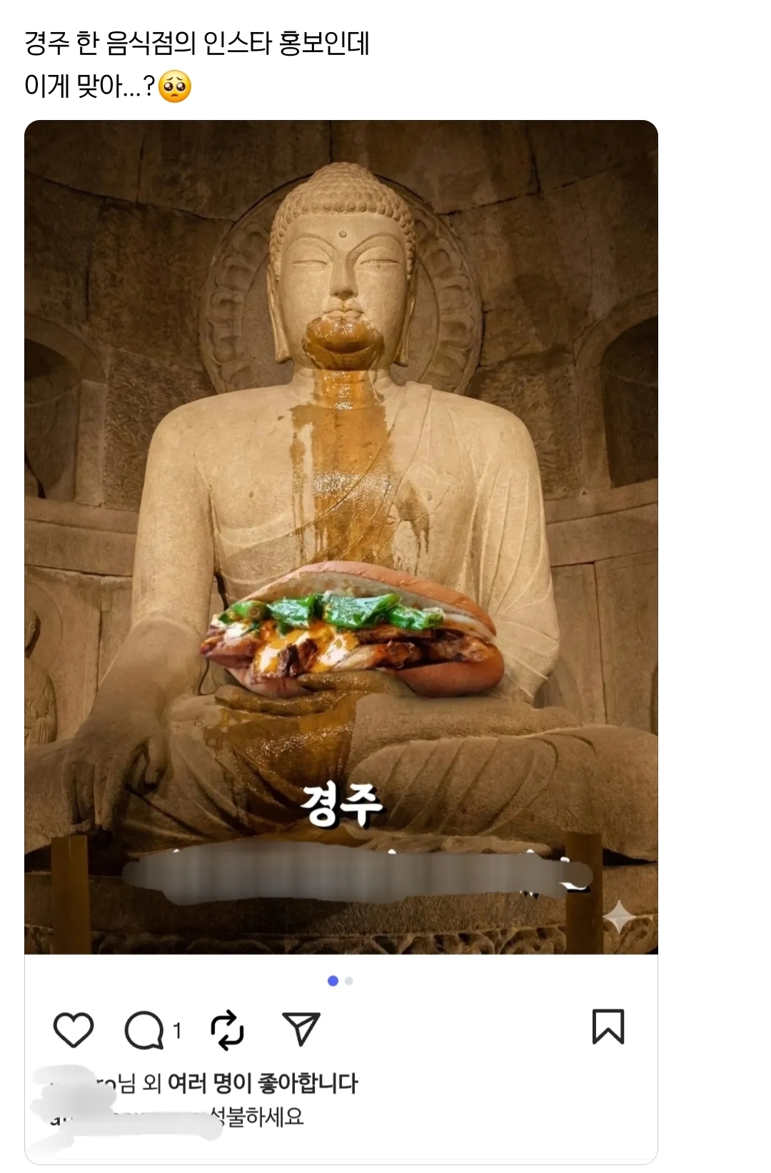 [흥미돋]경주 한 음식점의 인스타 홍보 작성자꿈돌이라면|작성시간25.11.23|조회수54,174 목록 댓글 221 글자크기 작게가 글자크기 크게가 출처: https://www.threads.com/@a_step_day/post/DRZfg8pEVS1?xmt=AQF0TpwVKyUrHCz-Pl8nmk4Ysg-67PRZZrJ2gC9Whmhj9HmGQvzrvUQ_f5rZ3UUSWgPxy8g&slof=1 다음검색 현재 게시글 추가 기능 열기 북마크 공유하기 신고 센터로 신고 댓글 댓글 221 댓글쓰기 답글쓰기 댓글 리스트 작성자4/4 11:22 | 작성시간 25.11.25 ㅂ뭔데 저게;;;; 더러워 작성자새벽의노래 | 작성시간 25.11.25 와.. 선넘네 작성자조개구이집 | 작성시간 25.11.25 ㅡㅡ 작성자랜덤 | 작성시간 25.11.25 어디냐;; 작성자골든리트리ㅂ | 작성시간 25.11.26 그냥 들고있는 것만 했어도 이정도는 아니었을텐데ㅡㅡ 훼손이 유머네.. 댓글 전체보기