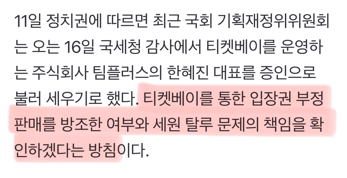 작성자문어정원 작성시간 25.11.24 내 의견 말하면 이건 티베가 불려갈게 아니라 사이트 관리 제대로 안해서 중국업자한테 다 털리는 티켓사이트가 문제라고 봐