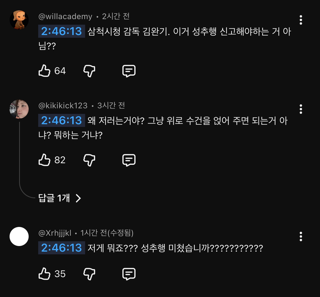삼척시청 감독이 과하게 접촉하는 모습이 나옴