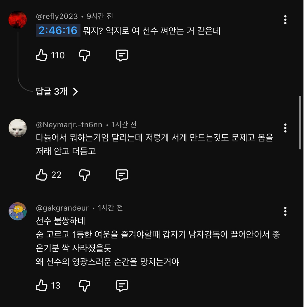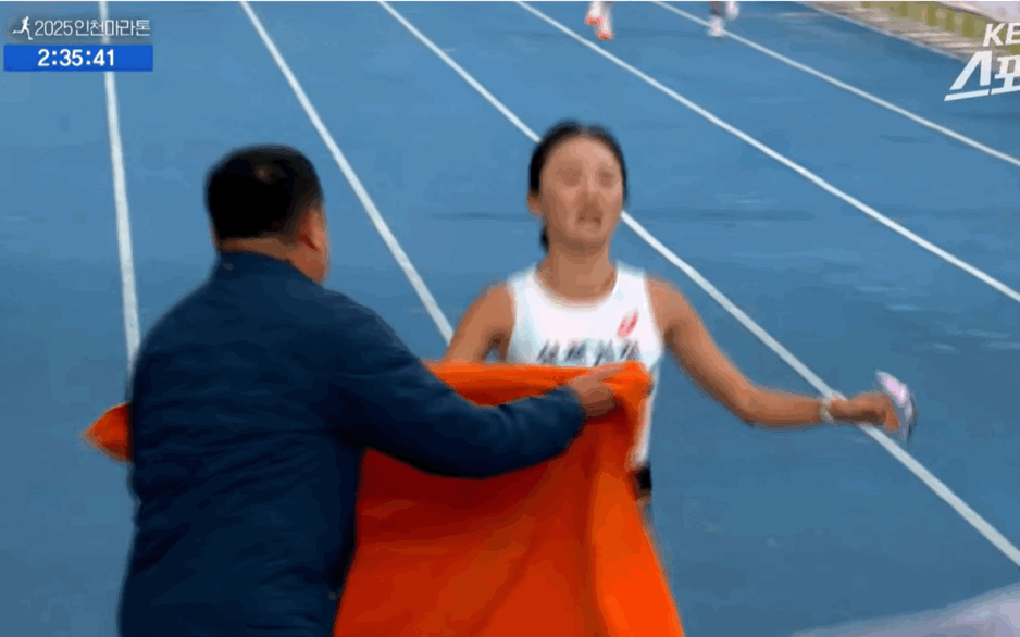마라톤 완주에 성공한 선수한테