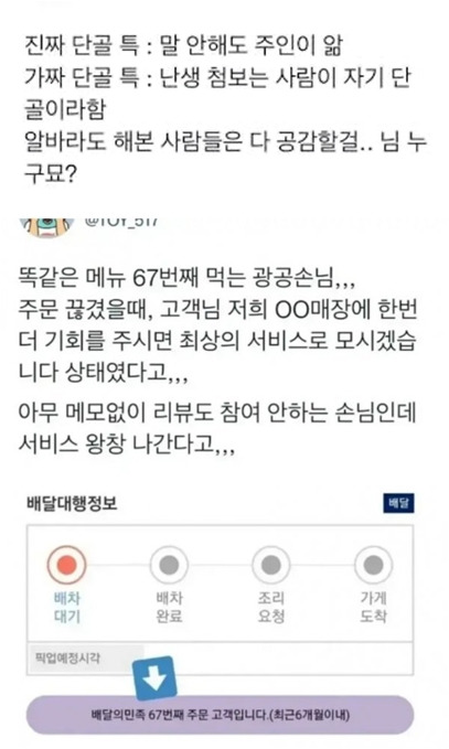작성자버터밀크팬케이크 작성시간 25.11.24 부모님 식당하시는데 찐단골들은 진짜 요구하는거 없음ㅋㅋㅋ 꼭 일년에 한두번 시켜먹거나 처음 주문했으면서 자기 단골인데 서비스 달라고함ㅋㅋㅋ 그리고 단골이면 주소외워져.. 그리고 주문할때 됐는데 주문 안하면 걱정됌 ㅠㅠ...
