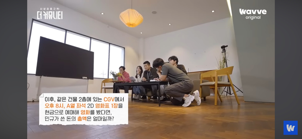 이후, 같은 건물 2층에 있는 CGV에서 오후 8시, A 좌석 2D 영화표 1장을 현금으로 예매해 영화를 봤다면, 민규가 쓴 돈의 총액은 얼마일까?