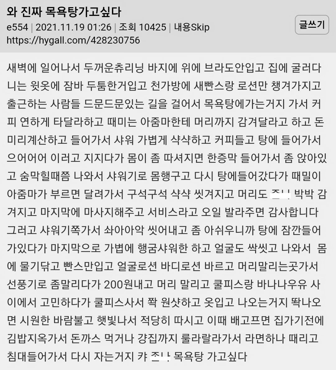 [스크랩] [흥미돋]와 진짜 목욕탕 가고싶다 작성자파밀푸라루크|작성시간25.11.24|조회수7,189 목록 댓글 1 글자크기 작게가 글자크기 크게가 출처 : 여성시대 압구정냉모밀미방글에서 목욕탕 냄새나는 기분.. 다음검색 스크랩 원문 : *여성시대* 차분한 20대들의 알흠다운 공간 현재 게시글 추가 기능 열기 북마크 공유하기 신고 센터로 신고 댓글 댓글 1 댓글쓰기 답글쓰기 댓글 리스트 작성자욤욤욤욤욤 | 작성시간 25.11.24 어제 갔다왔지~ 댓글 전체보기