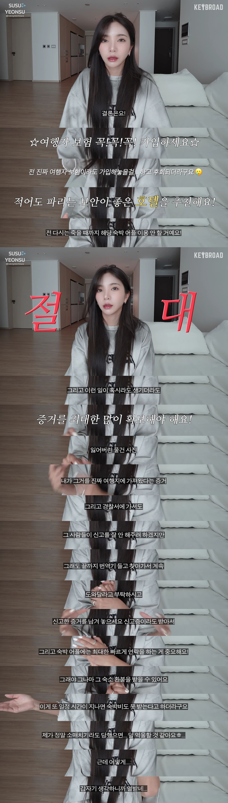 여행자 보험 꼭 들어놓고 증거 많이 확보해놓기..