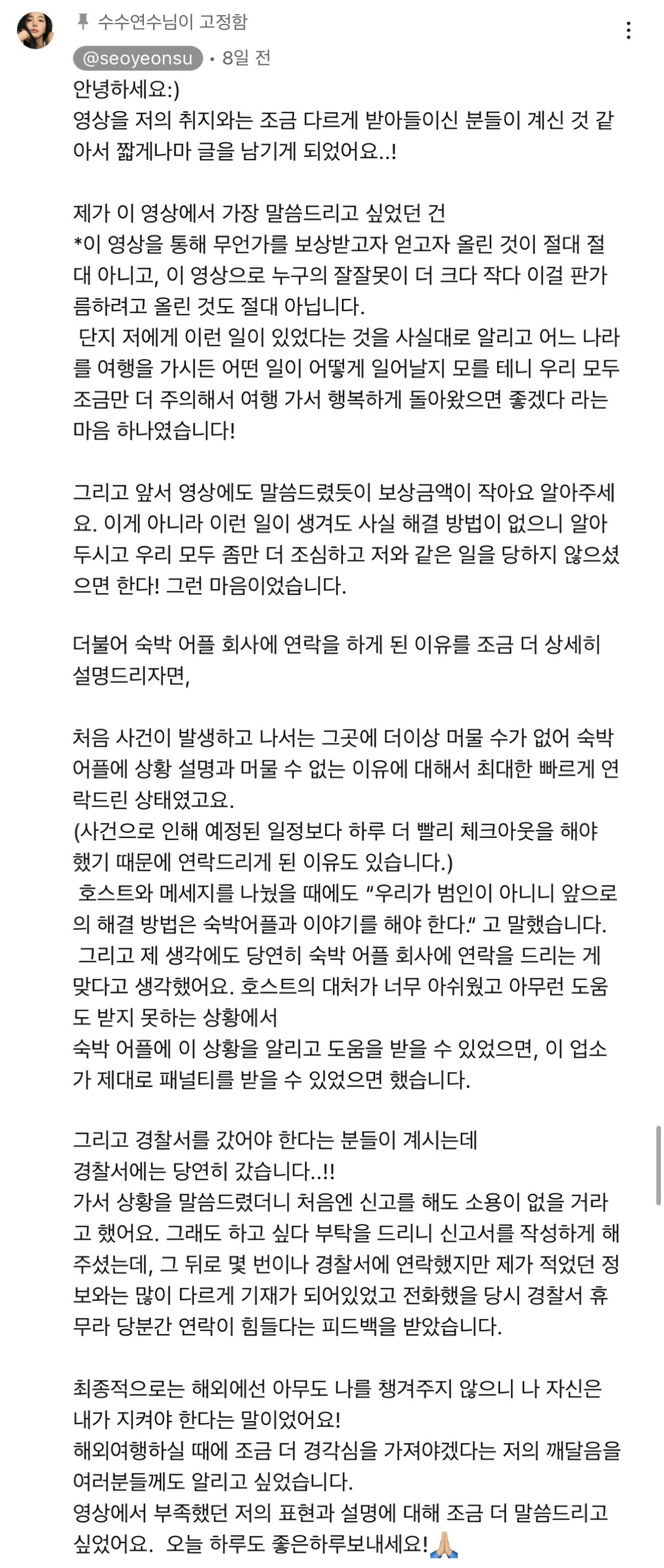 암튼 그런 이유로 숙박어플에 어느정도의 보상을