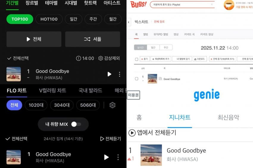 전 음원차트 1위