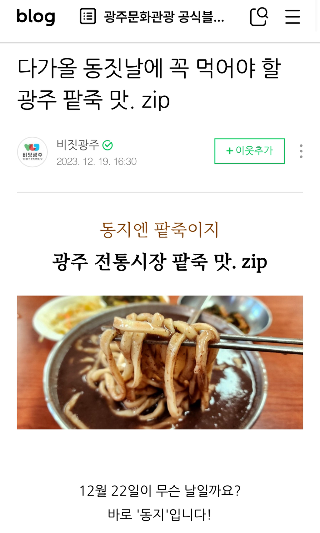 칼국수 면이 들어간 팥죽 먹으러 간 관광청