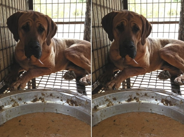 음식물 쓰레기를 먹이는 개 농장에서 구조된