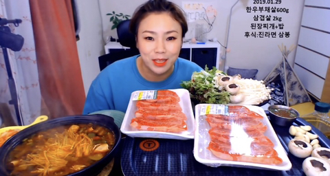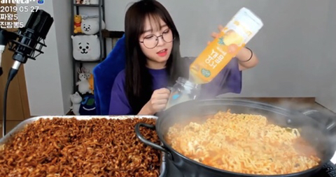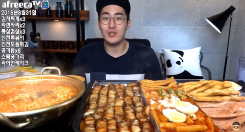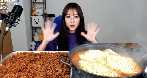 특징 : 고작 한판 먹방 자주함 비제이들 중에 제일 입 크고 제일 빨리 삼키는듯 면은 그냥 녹임