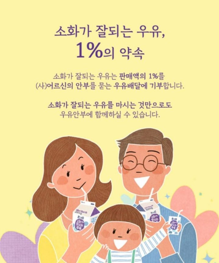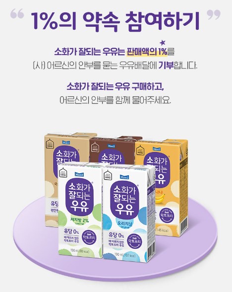 소화가 잘되는 우유 판매액의 1%는 우유안부에 기부 된다고함!