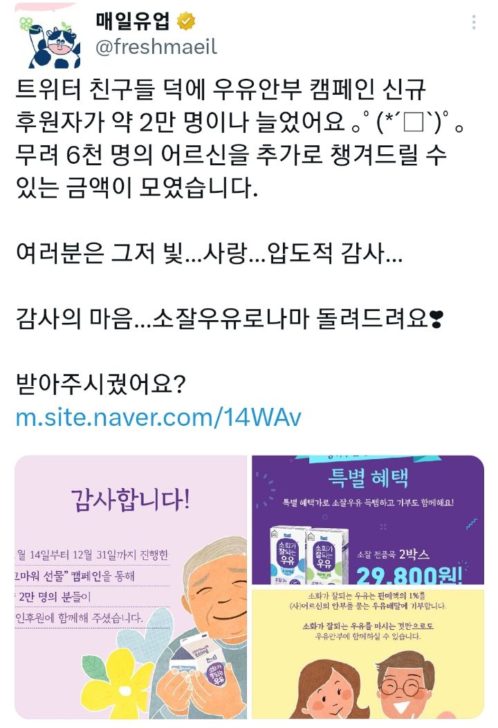 매일유업에서 진행중인 우유안부 캠페인이란?