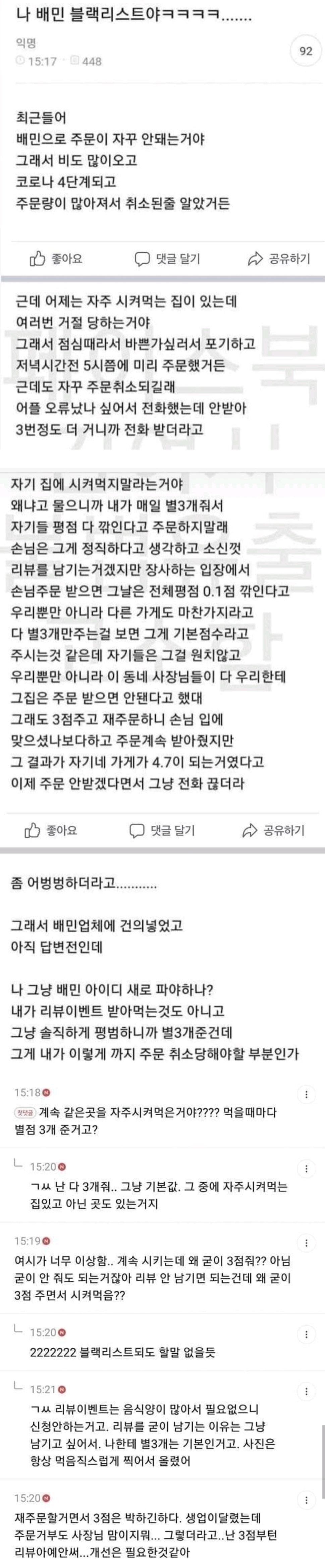 [스크랩] [기타]나 배민 블랙리스트야ㅋㅋㅋㅋㅋㅋ...... 작성자내개로와|작성시간25.11.25|조회수60,577 목록 댓글 119 글자크기 작게가 글자크기 크게가 다음검색 스크랩 원문 : 쭉빵카페 현재 게시글 추가 기능 열기 북마크 공유하기 신고 센터로 신고 댓글 댓글 119 댓글쓰기 답글쓰기 댓글 리스트 작성자요리조리보보고 | 작성시간 25.11.26 난 별로여도 5점주고 내용에 쓰는데 작성자이도저도 아닌애 | 작성시간 25.11.26 별점 3개 줄 자유 있는데 사장님도 주문 안받을 자유 있는거지 작성자헛헛하다 | 작성시간 25.11.26 음.. 지능이낮은거같음 작성자레일라 | 작성시간 25.11.26 진짜 ㄸㄹㅇ같아 작성자뿡뿡인데 | 작성시간 25.11.26 정신병ㅏ 댓글 전체보기