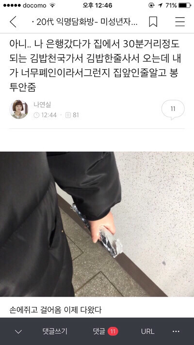 [스크랩] [배꼽의행방]나 은행갔다가 집에서 30분거리정도 되는 김밥천국가서 김밥한줄사서 오는데 작성자알쓰|작성시간25.11.25|조회수22,939 목록 댓글 38 글자크기 작게가 글자크기 크게가 출처: 여성시대 세 레나 다음검색 스크랩 원문 : *여성시대* 차분한 20대들의 알흠다운 공간 현재 게시글 추가 기능 열기 북마크 공유하기 신고 센터로 신고 댓글 댓글 38 댓글쓰기 답글쓰기 댓글 리스트 작성자두산베어스 V7 | 작성시간 25.11.26 ㅋㅋㅋㅋㅋㅋㅋㅋㅋㅋㅋㅋㅋㅋㅋ아웃곀ㅋㅋㅋㅋ 작성자우짜라? | 작성시간 25.11.26 환연 ㅈㄴ 웃김 작성자내 꿈은 돈 많은 백수 | 작성시간 25.11.26 ㅋㅋㅋㅋㅋㅋㅋㅋㅋㅋㅋ 작성자건.들.기.만.해.봐 | 작성시간 25.11.26 진짜 다쳐웃기네 ㅠㅋㅋㅋㅋㅋㅋㅋㅋㅋㅋㅋㅋㅋㅋㅋㅋㅋㅋㅋㅋㅋㅋㅋㅋ 작성자모두 이루어져라 | 작성시간 25.11.27 다 웃걐ㅋㅋㅋㅋㅋㅋㅋ 댓글 전체보기