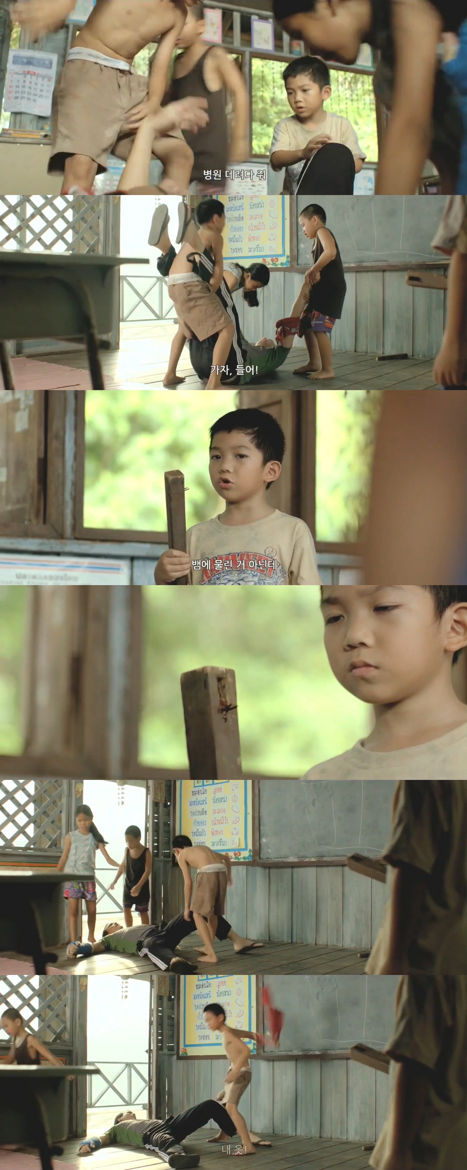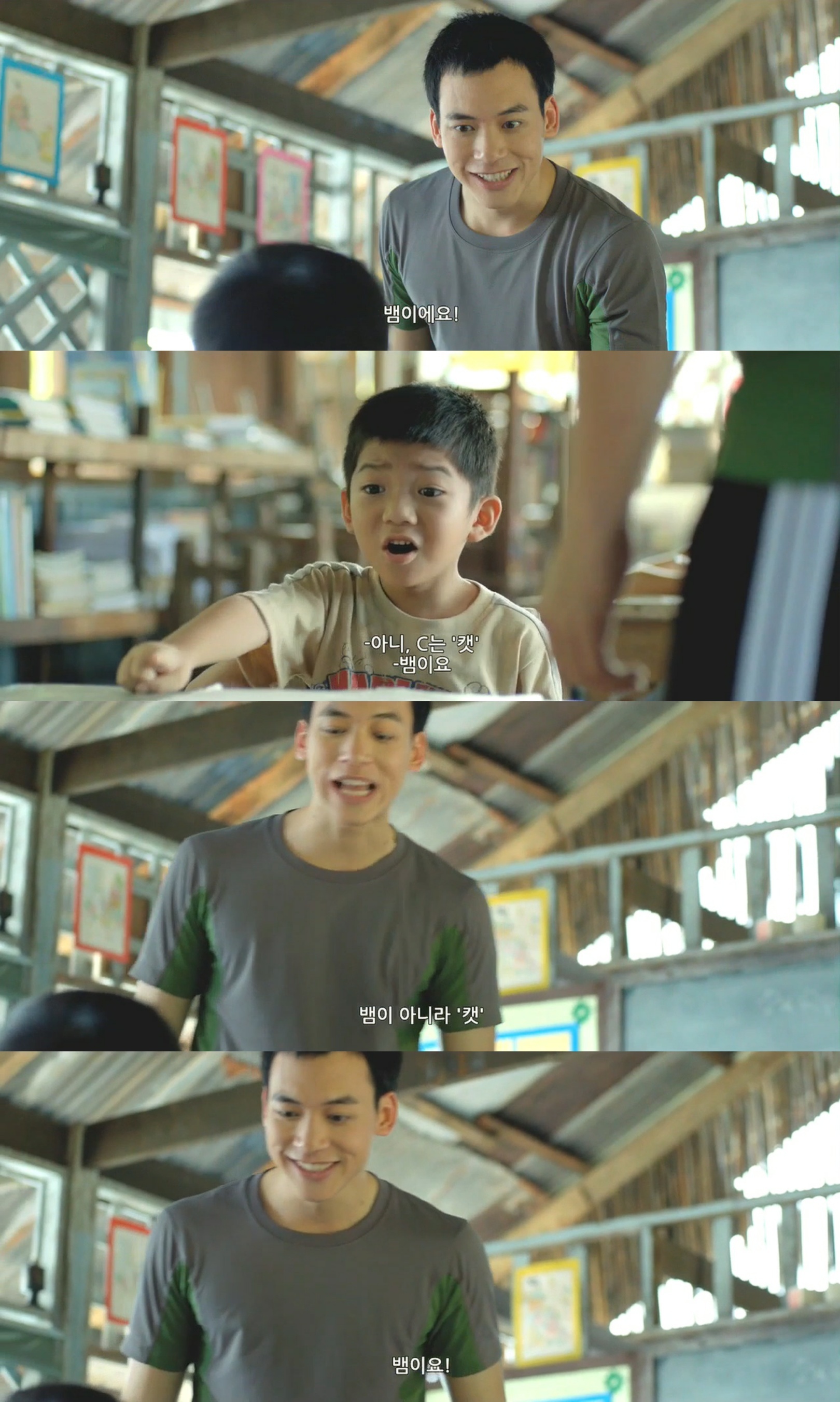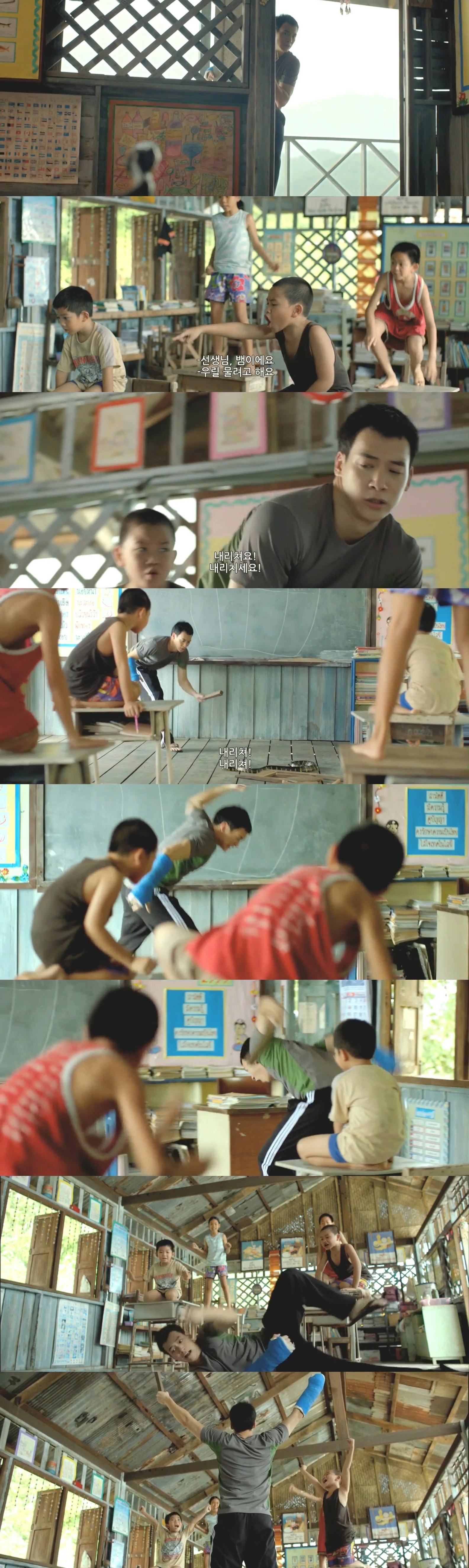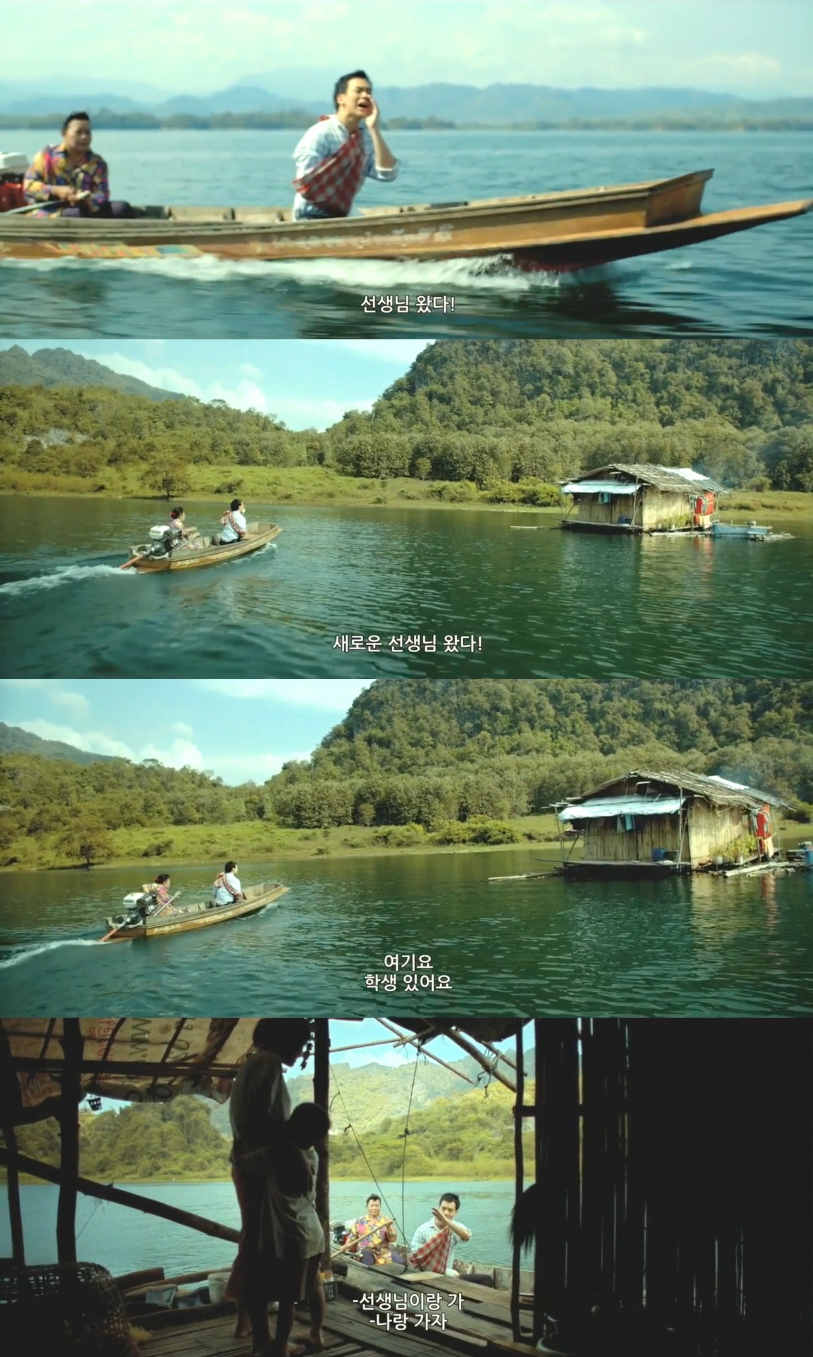 아주머니의 도움으로 마을의 학생 4명을 학교로 데리고 오는 송 선생님!