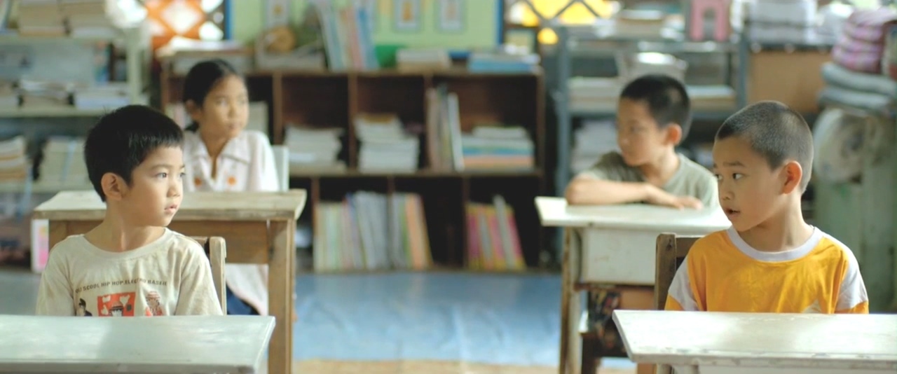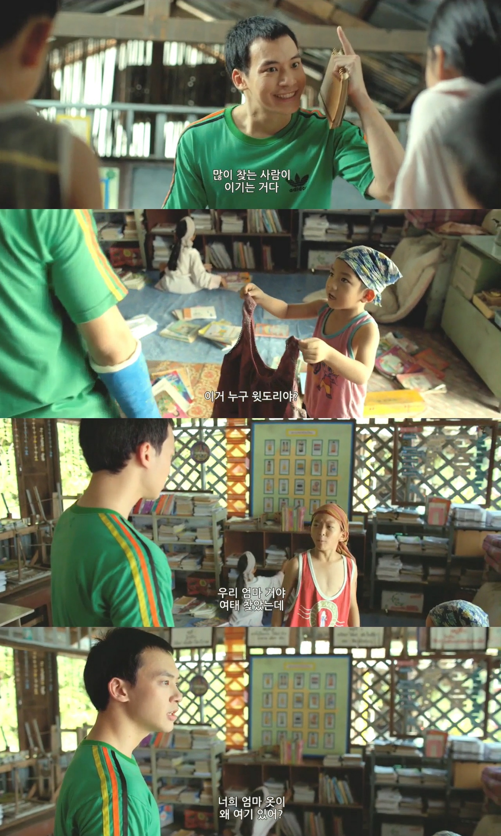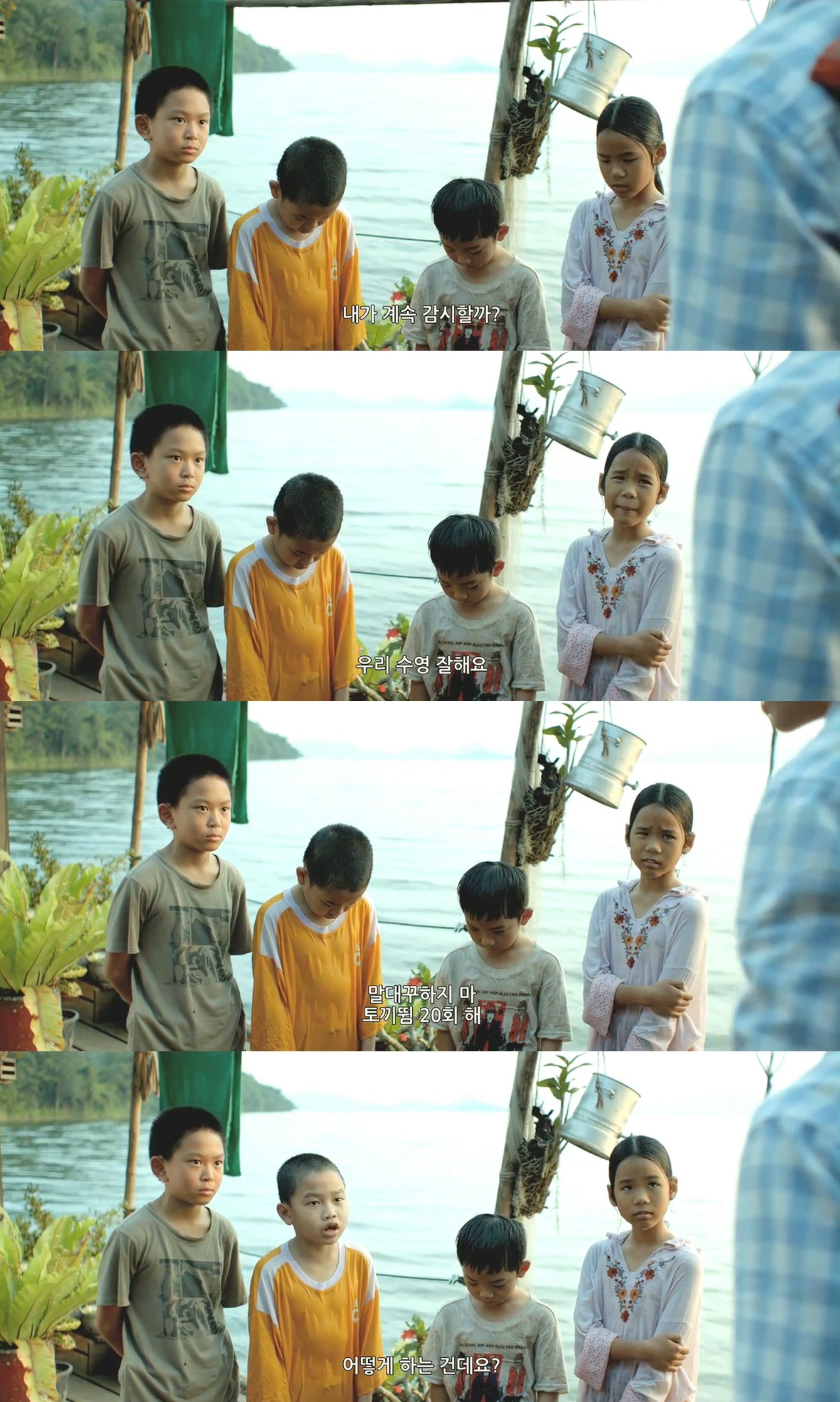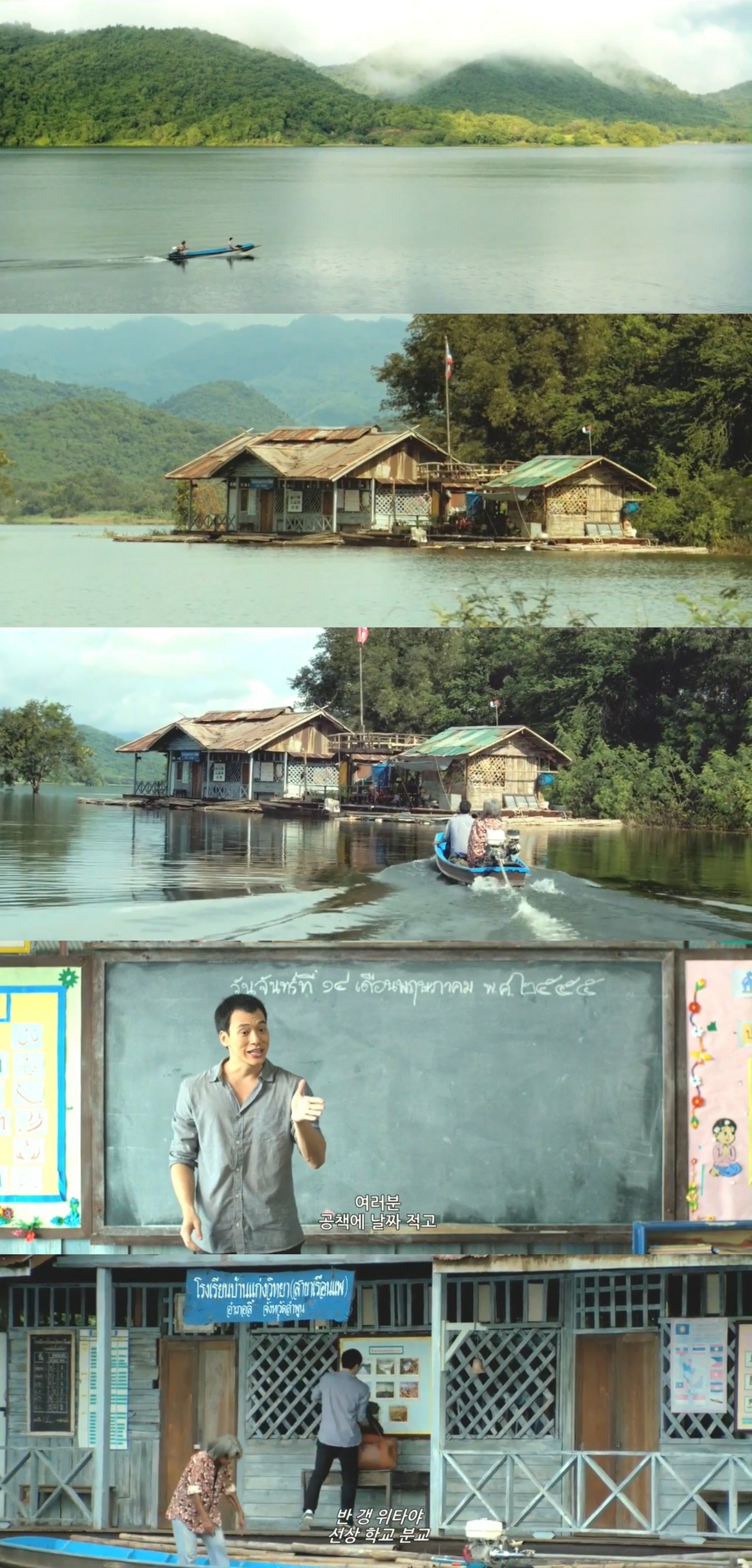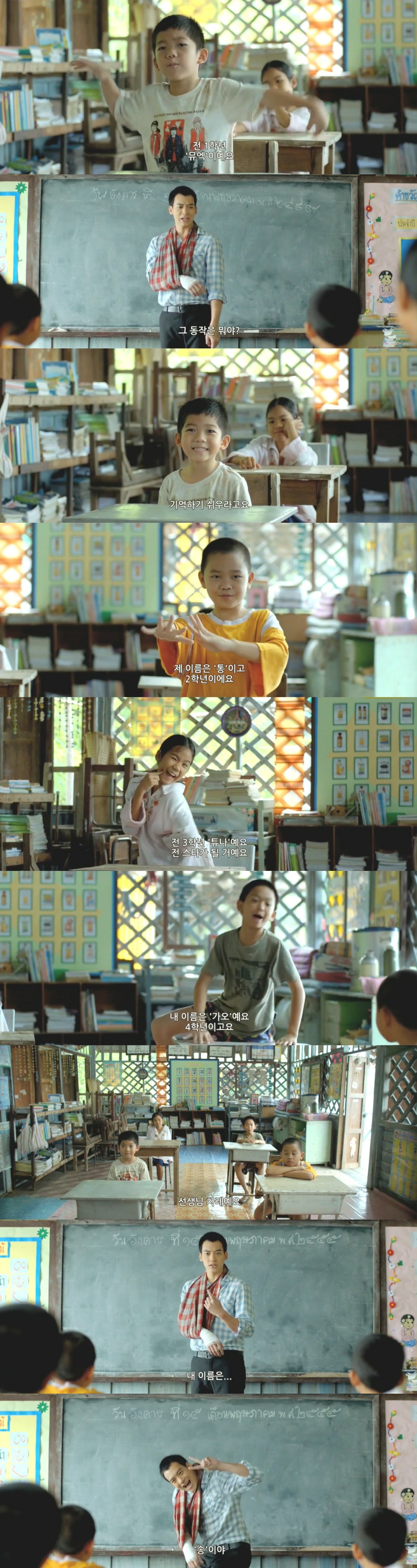 아주머니의 도움으로 마을의 학생 4명을 학교로 데리고 오는 송 선생님!