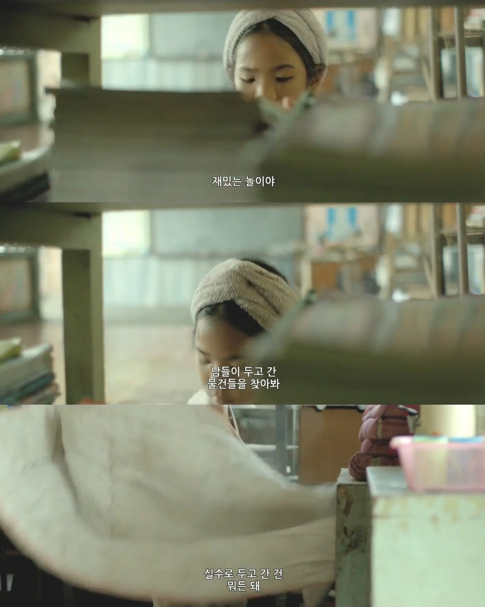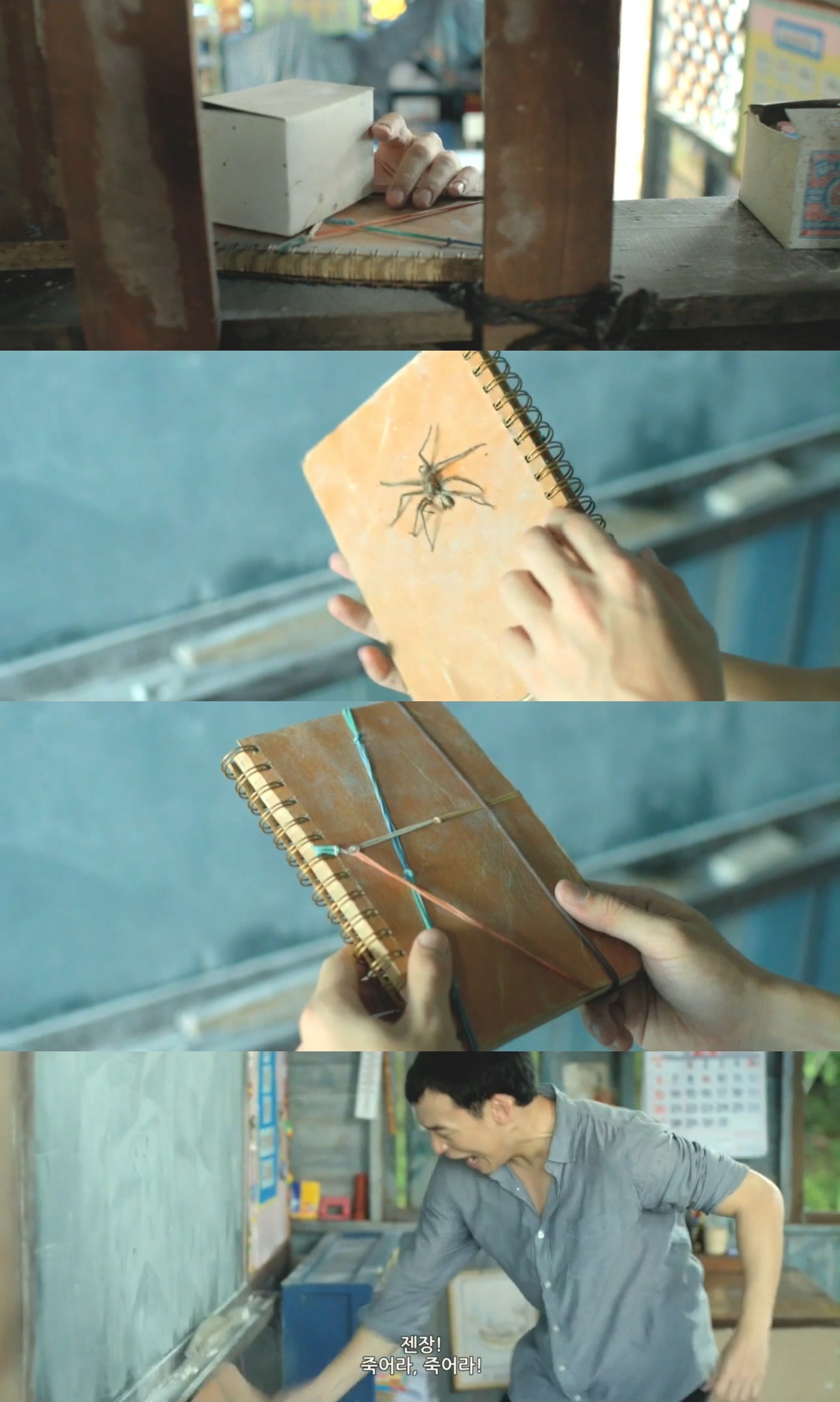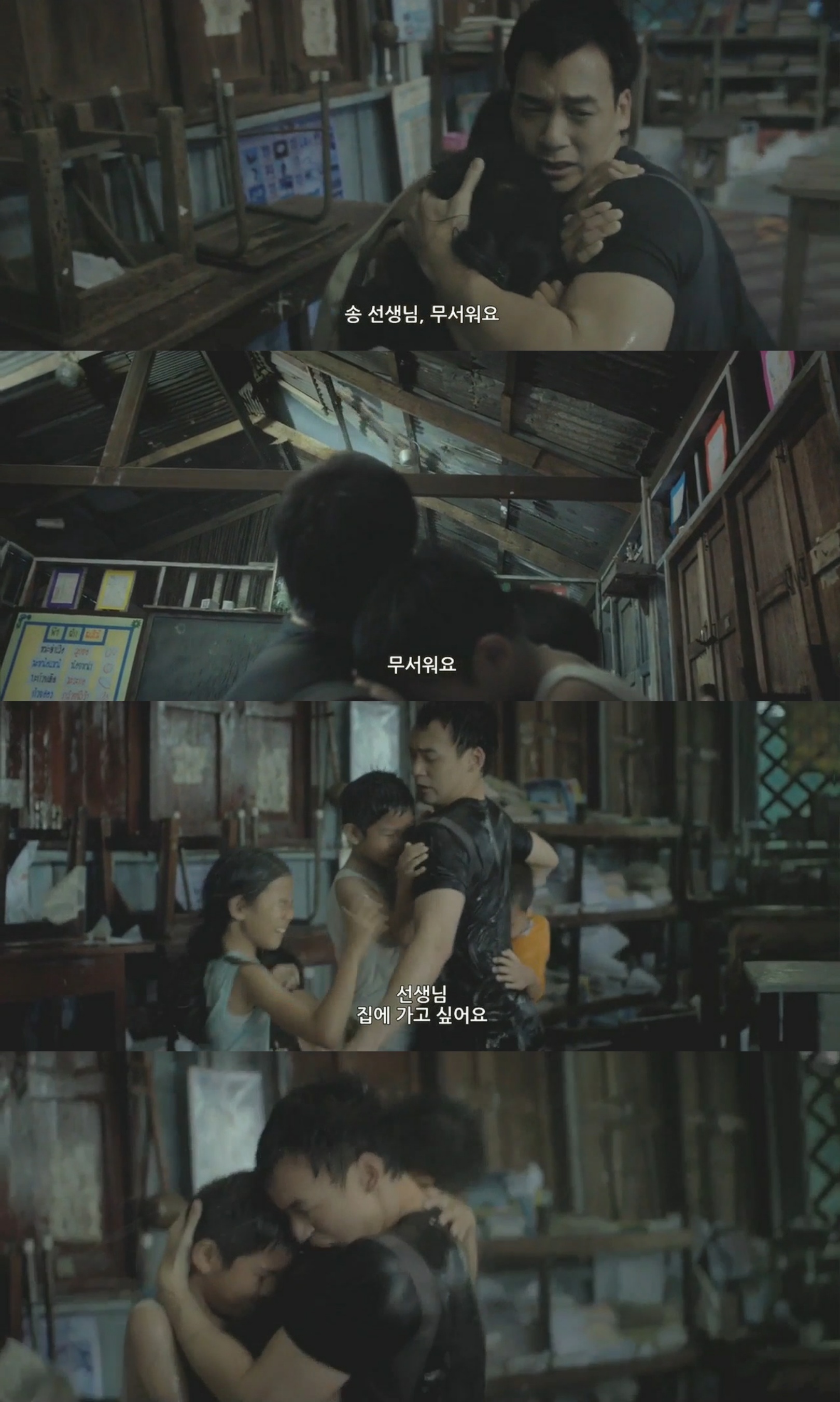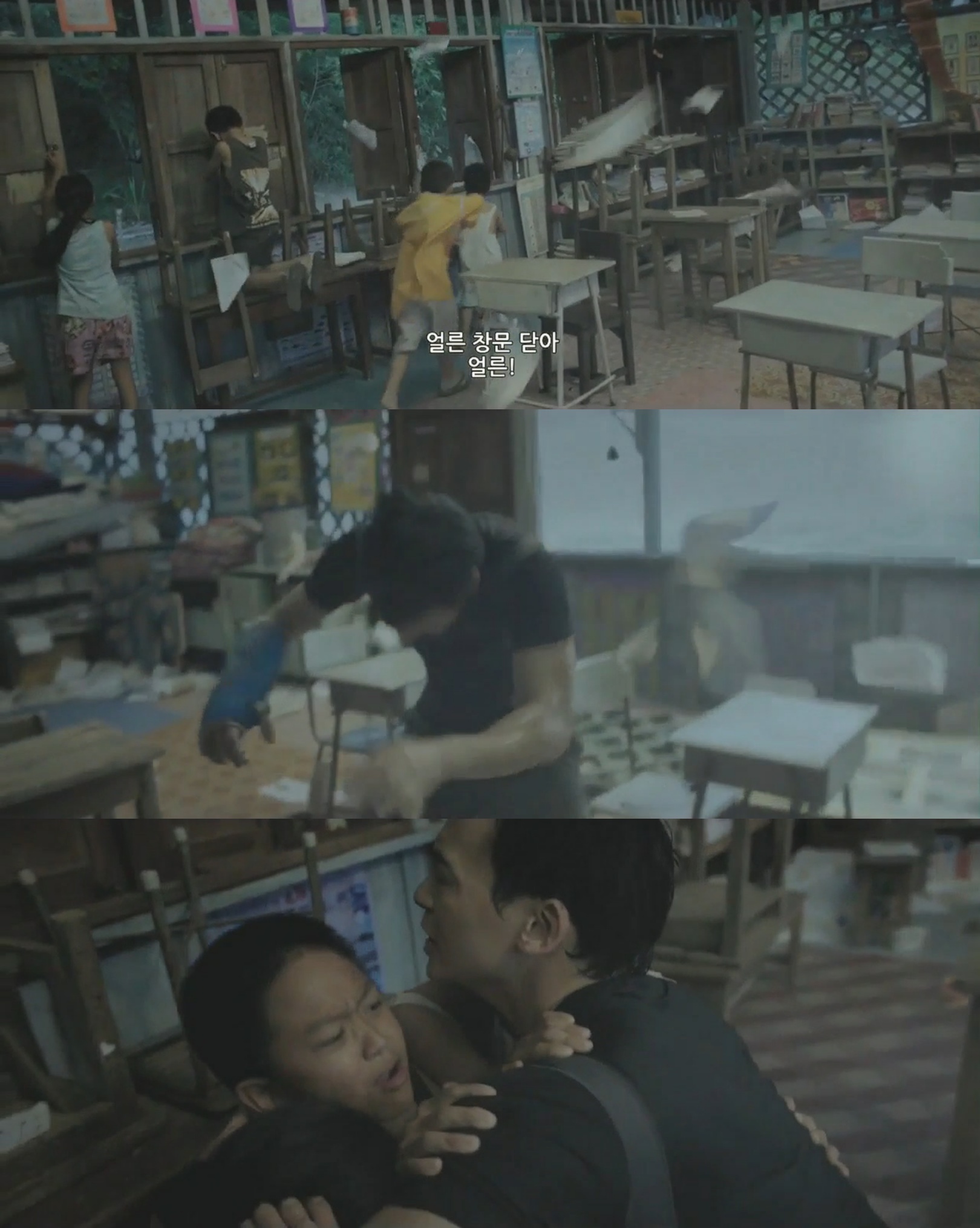창문이 날아가고 아이들과 구석에서 몸을 숨기는 송 선생님