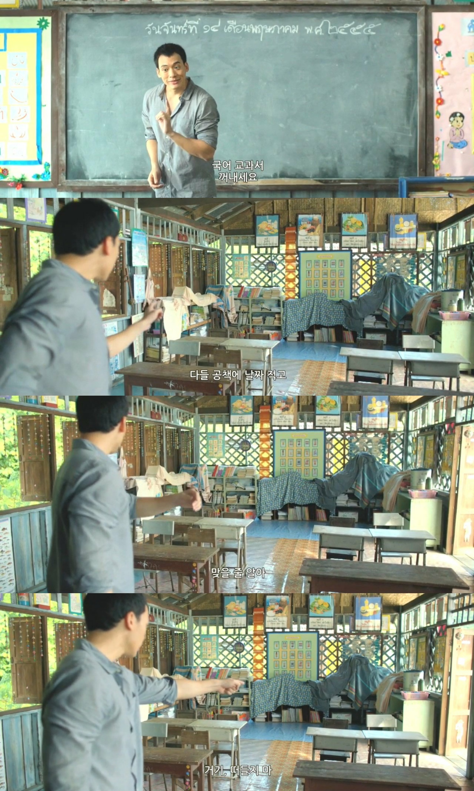 학생없는 학교에서 혼자 수업연습을 하던 송 선생님은