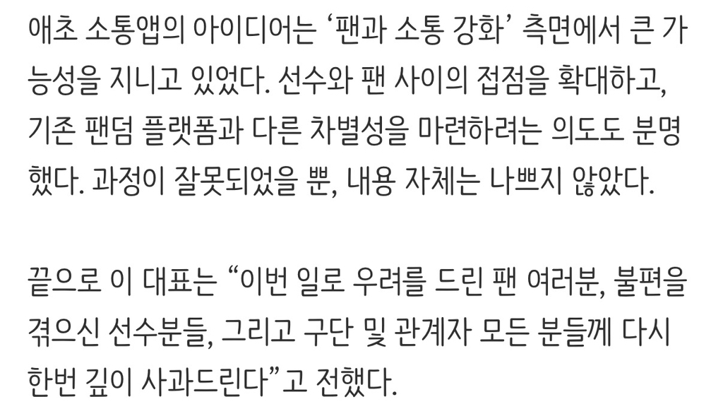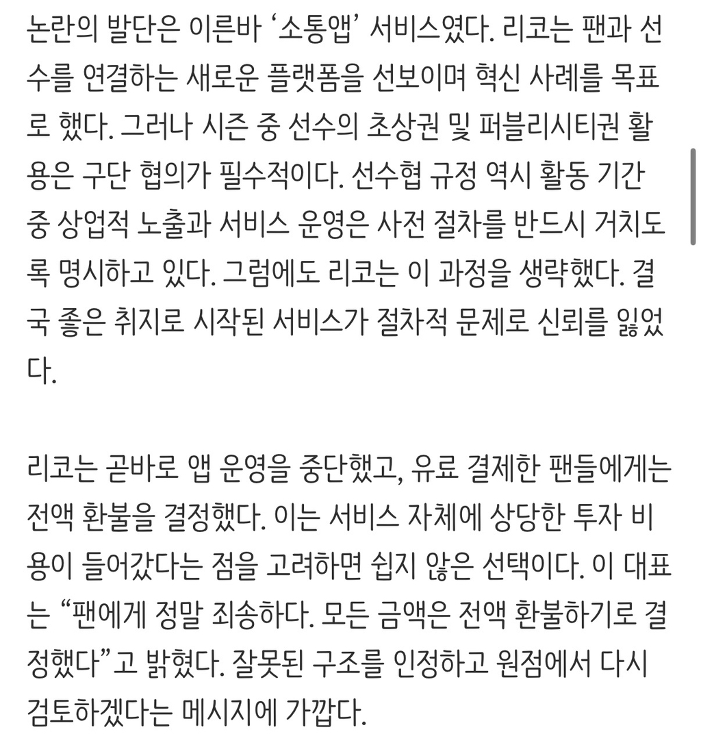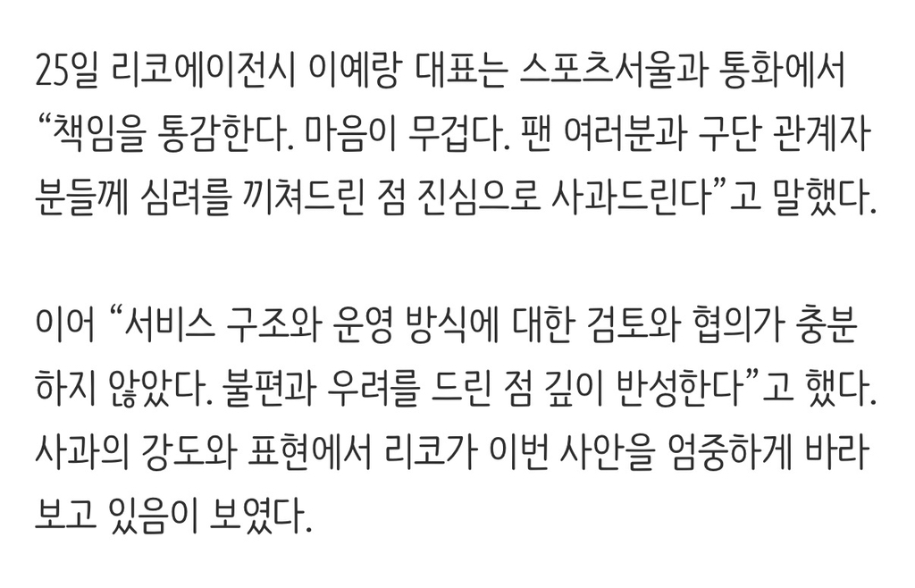 [흥미돋]‘소통앱 중단 결정’ 리코, 책임 인정했다…이예랑 대표 “깊이 반성, 팬·구단께 진심으로 사과드립니다” [SS인터뷰] 작성자뭐하려고했지|작성시간25.11.25|조회수35,856 목록 댓글 58 글자크기 작게가 글자크기 크게가 출처: https://m.sports.naver.com/kbaseball/article/468/0001197461‘소통앱 중단 결정’ 리코, 책임 인정했다…이예랑 대표 “깊이 반성, 팬·구단께 진심으로 사여기를 눌러 링크를 확인하세요m.sports.naver.com 다음검색 현재 게시글 추가 기능 열기 북마크 공유하기 신고 센터로 신고 댓글 댓글 58 댓글쓰기 답글쓰기 댓글 리스트 작성자뉴노머 | 작성시간 25.11.26 누가봐도 아이돌산업 가져와서 여자돈 뽑아먹으려는 수작질이었음 야구판에 여팬 늘어나니까. 작성자이글슈 | 작성시간 25.11.26 이게 무슨 ;;;; 작성자억까그만 | 작성시간 25.11.26 레전드 돈미새 너무 싫어 제발 사라져 작성자프로젝트레인보우 | 작성시간 25.11.26 선수들 버블 몸값은 안죄송하낰 작성자차도녀정재형 | 작성시간 25.11.26 좋은 취지-> 본인 돈 벌 수 있는 본인한테만 좋은 취지 아닌가? ㅋㅋㅋㅋ 댓글 전체보기