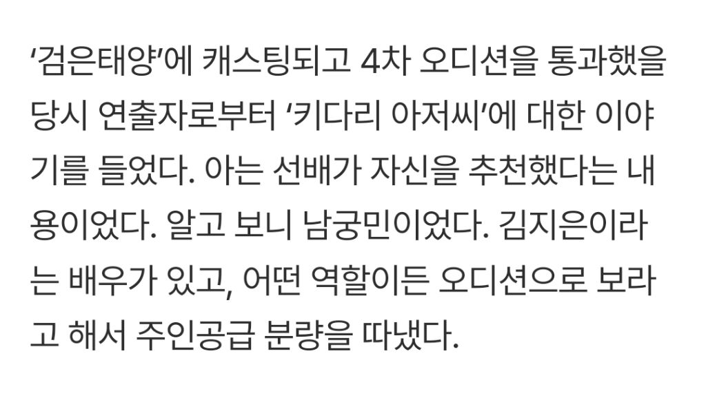 그때 오디션을 본 작품이 바로 <검은태양>