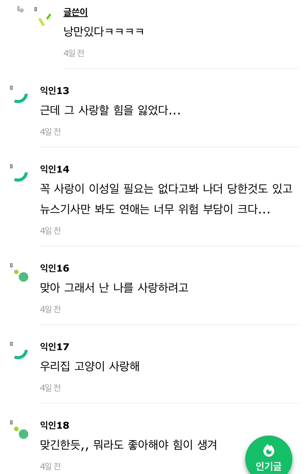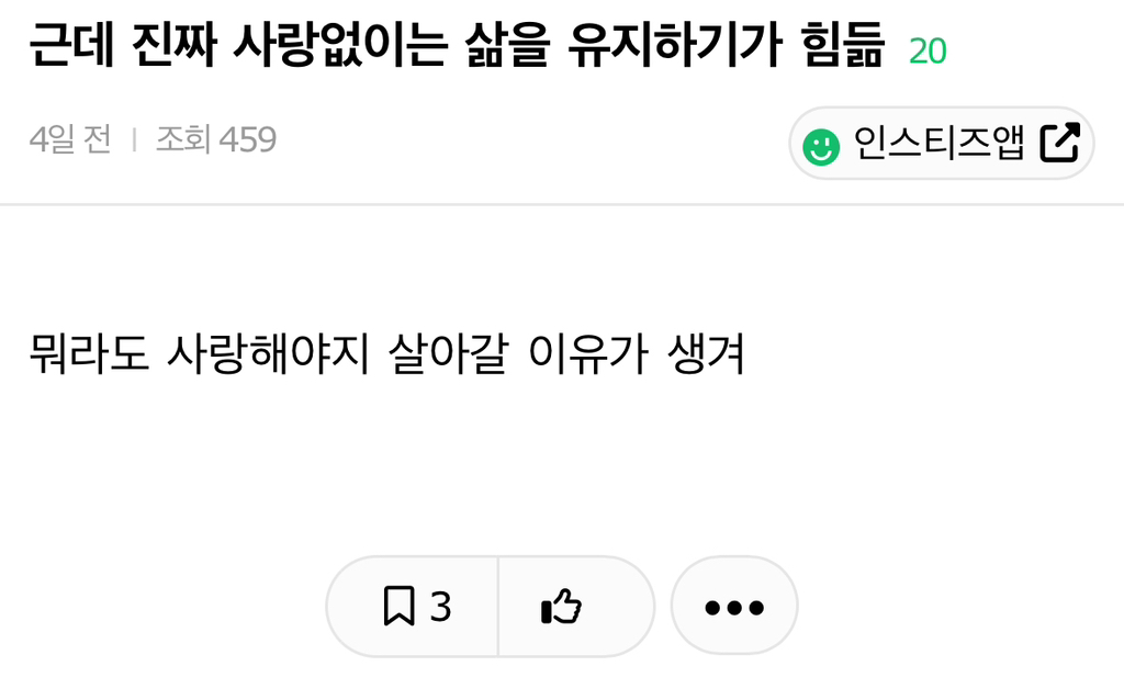 작성자초록 버터칩 작성시간 25.11.26 이거 진짜 맞는 말이야...뭐라도 사랑해야 돼...