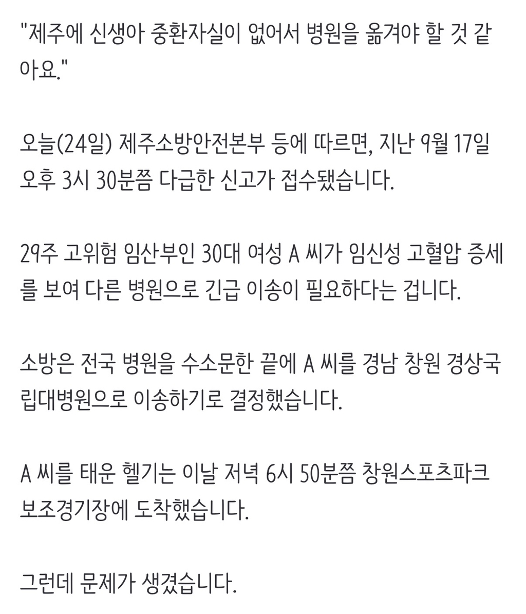 제주도에 신생아 중환자실이 없어서