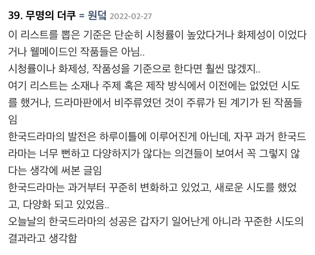 출처: https://theqoo.net/square/2359979384 더쿠 - 한국 드라마계에서 기념비적 작품들