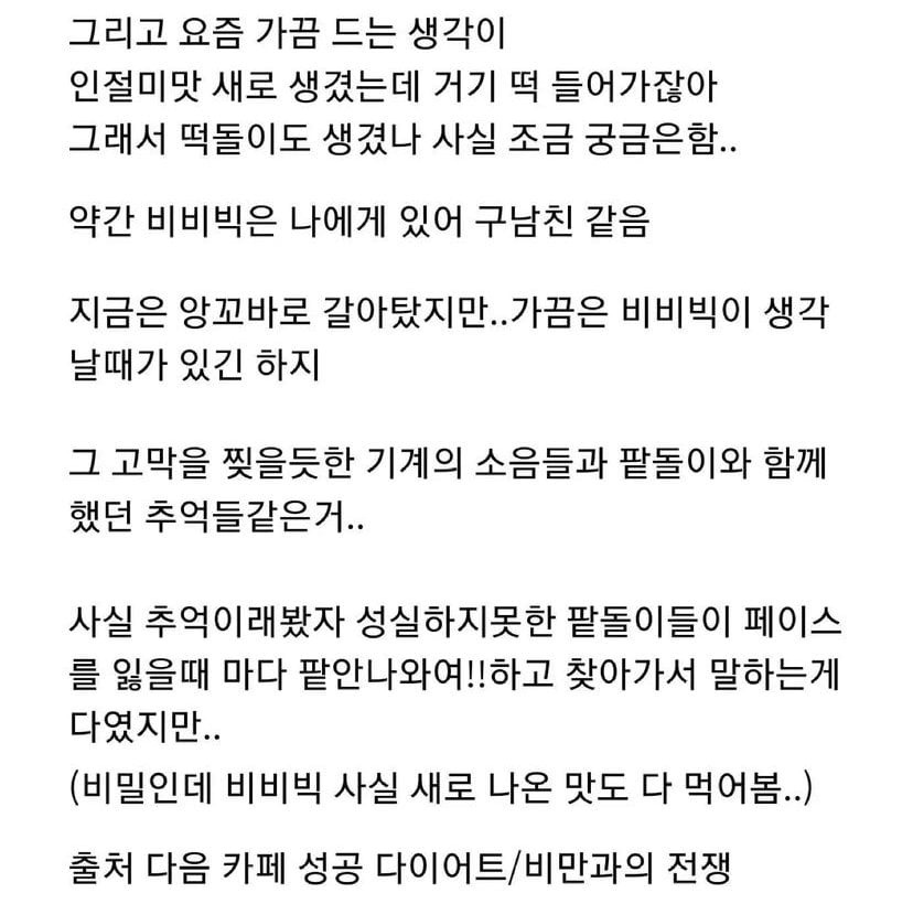 [스크랩] [흥미돋]비비빅 좋아해서 공장 취직까지 했는데 작성자flflf|작성시간25.11.26|조회수44,599 목록 댓글 27 글자크기 작게가 글자크기 크게가 출처: https://www.dmitory.com/issue/334903988 다음검색 스크랩 원문 : *여성시대* 차분한 20대들의 알흠다운 공간 현재 게시글 추가 기능 열기 북마크 공유하기 신고 센터로 신고 댓글 댓글 27 댓글쓰기 답글쓰기 댓글 리스트 작성자이안류 | 작성시간 25.11.26 진짜 출처까지가 글의 완성임ㅋㅋㅋㅋㅋ 넘 귀여웤ㅋㅋㅋㅋㅋ 작성자텀블러와떡볶이 | 작성시간 25.11.26 ㅋㅋㅋㅋㅋㅋㅋㅋ앜!!!귀여워서 비비빅 조지러간다.(비장) 작성자안태주. | 작성시간 25.11.26 출처미치겟넼ㅋㅋㅋㅋㅋㅋㅋㅋㅋㅋ 작성자푸팟퐁커리볶음면 | 작성시간 25.11.26 출처ㅋㅋㅋㅋㅋ 작성자뜌어 | 작성시간 25.12.06 저 카페는 대체 어떤곳이기에 네임드가 많어ㅋㅋㅋㄱㅋㅋ 댓글 전체보기