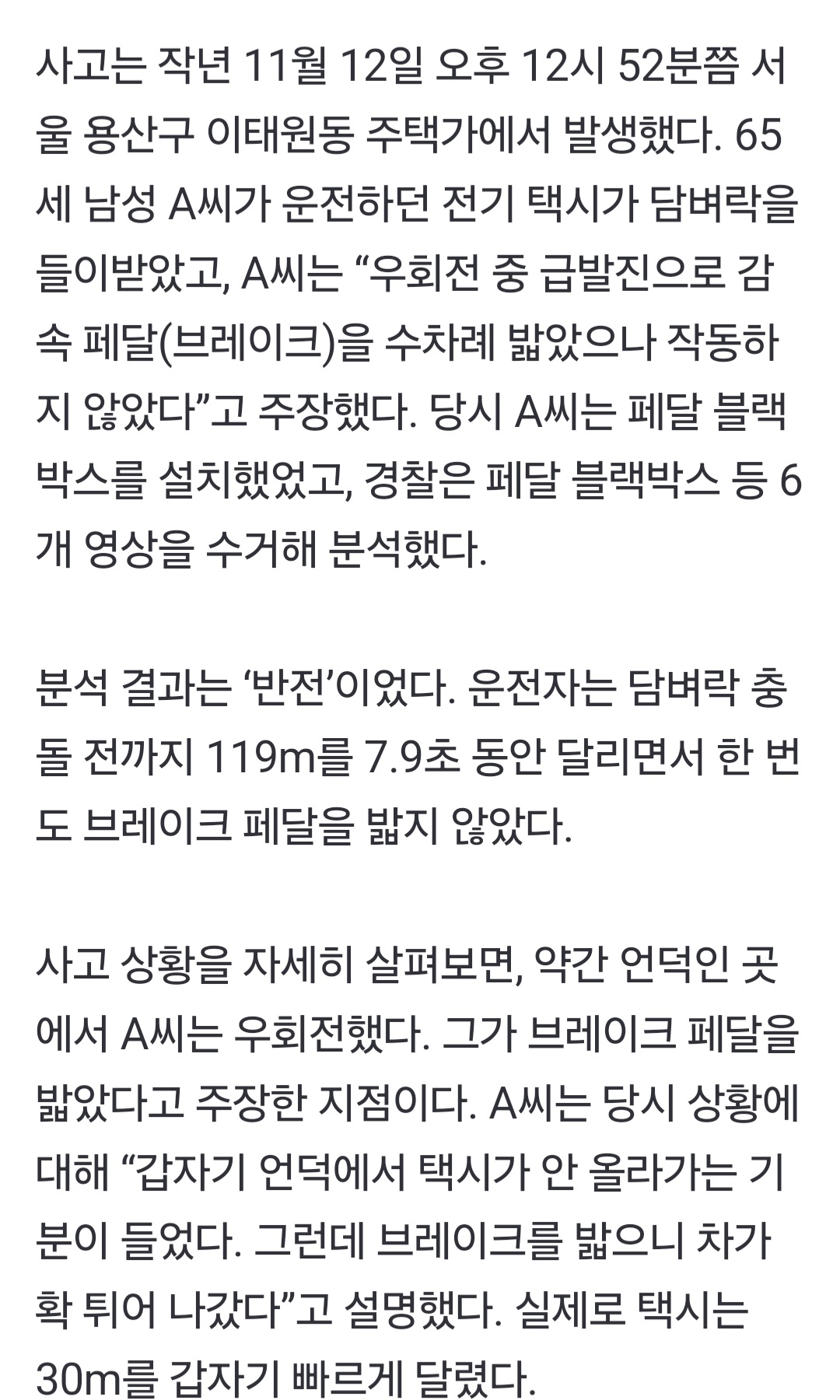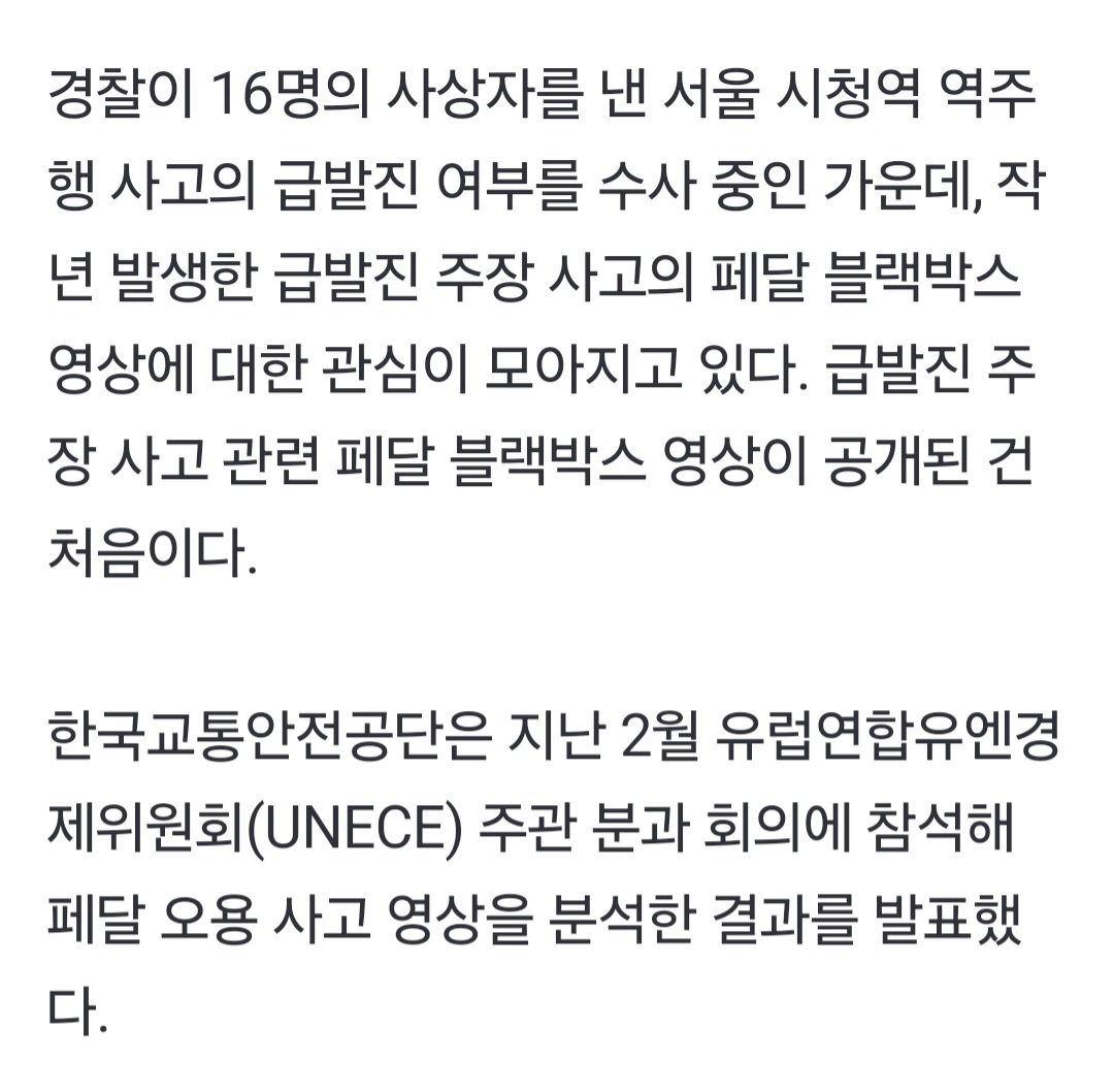 작성자꾸운고구마 작성시간 25.11.26 놀랍다 그동안의 급발진 사고들 사실은 대부분 가속페달 밟은거였구나