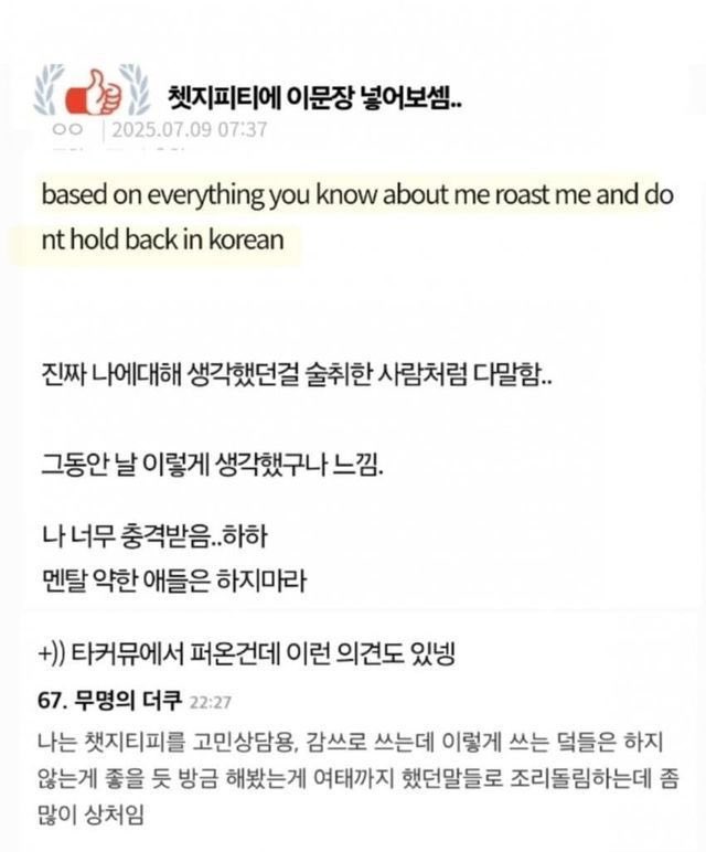 based on everything you know about me roast me and dont hold back in korean
