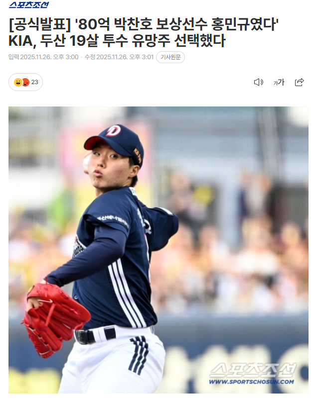 작성자정이뚜까작성시간25.11.26조회수8,948 목록 댓글 52출처: https://m.sports.naver.com/kbaseball/article/076/0004350461