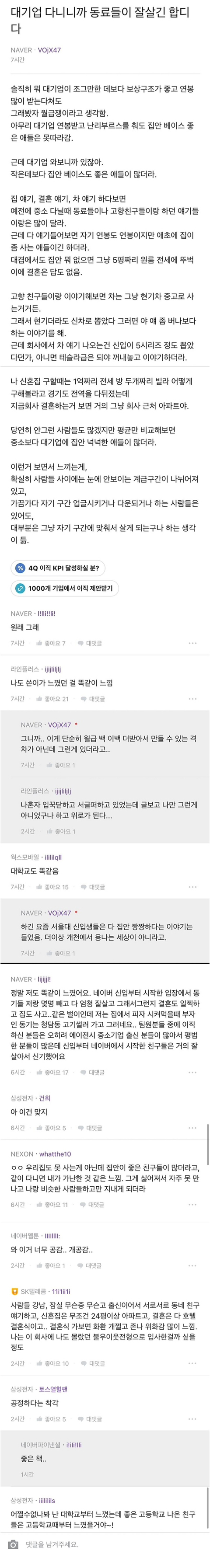 작성자술독에빠지고싶다 작성시간 25.11.26 대학 가자마자부터 느껴진게 어디 살아에서 시작되서 어디 고등학교 나왔는지 묻고 거기 토박이 아니니까 딱 그 대화 중단되고 다른얘기로 넘어가더라 (난 아빠가 서울에서 일했는데 경기도 살다가 나 고딩 졸업 후에 강남으로 이사했던 케이스) 회사 들어가고 나서도 처음보면 몇번 스캔 거치고 결국 경제적 상황 비슷한 사람들끼리 어울리게 되어있음. 아무리 대기업이라 상황이 좋아도 금수저라 월급으로 오롯이 오마카세 다니고 매해마다 해외 가는게 전혀 부담이 아닌 사람들이랑 월급으로 생활도 하고 주거안정도 추구해야 하는