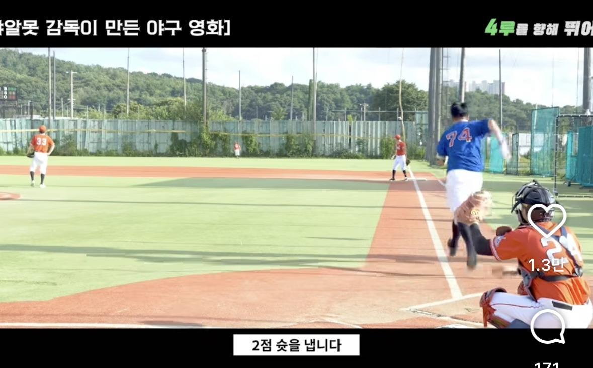 4루 지나쳐서 한바퀴 더 돌 정도의 장타를 친 주장