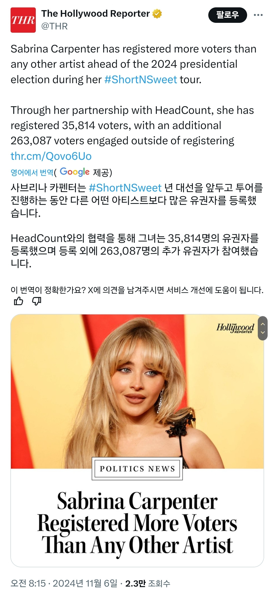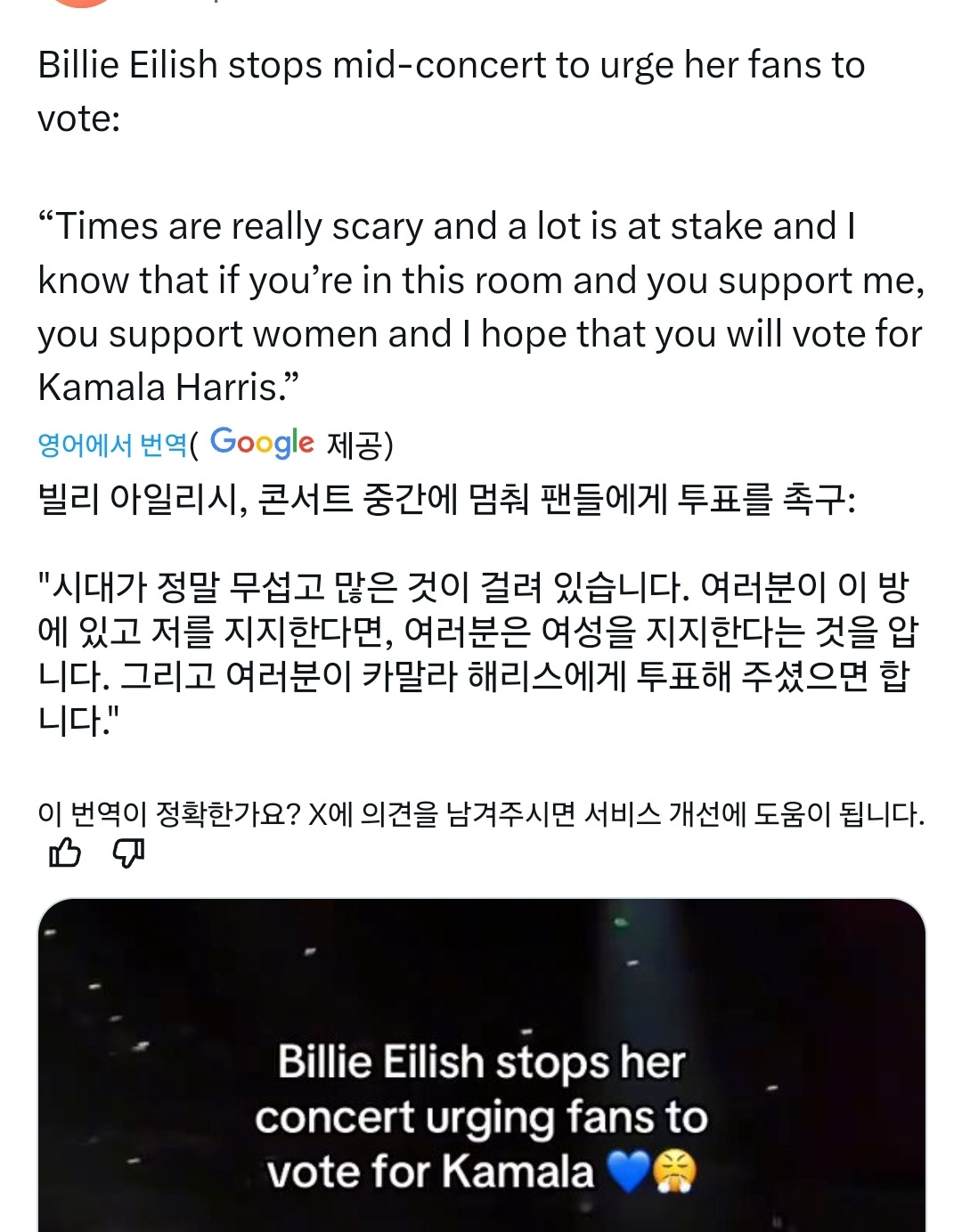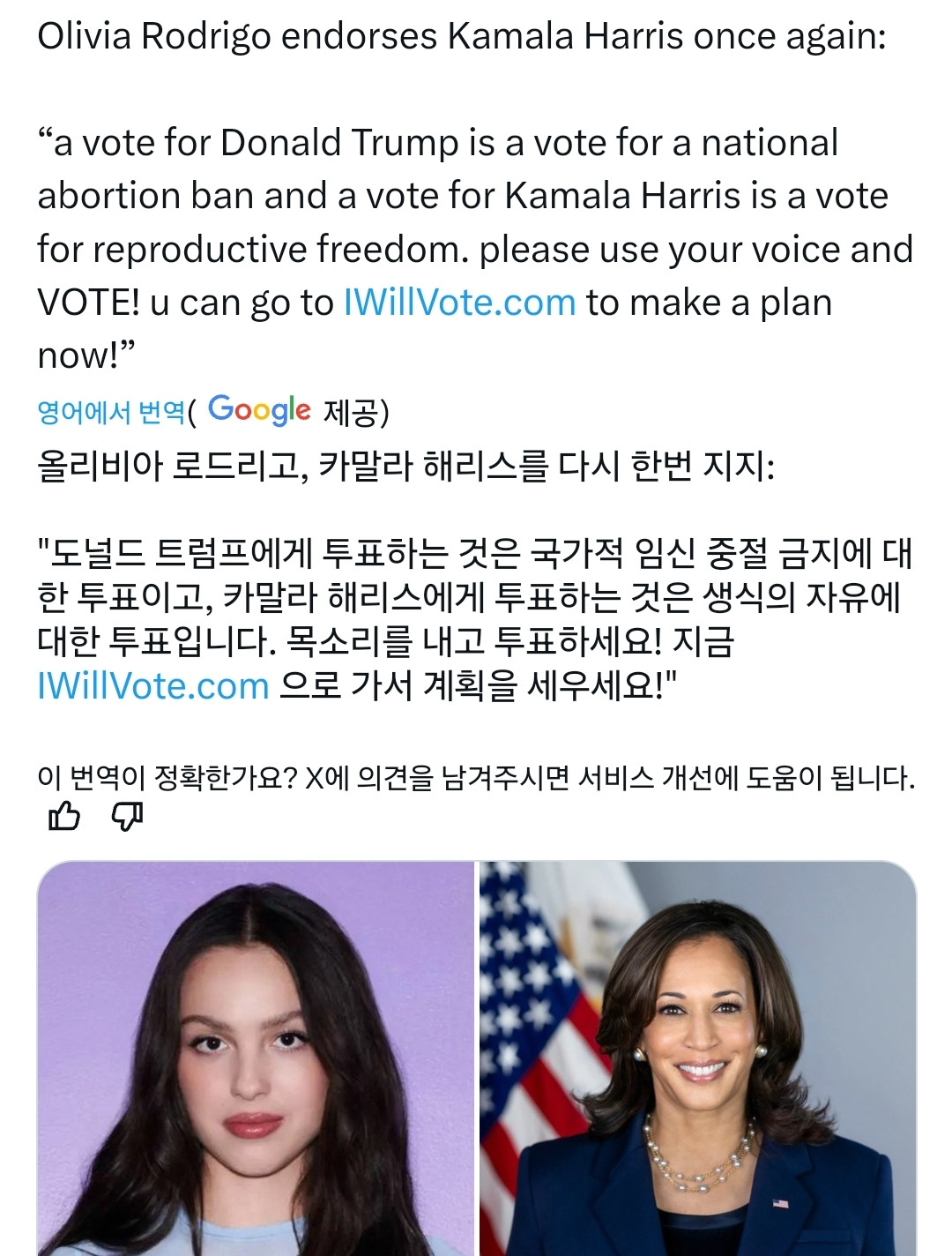 미국은 연예인들이 대놓고 낙태권 지지하고 투표하자, 같이 누구 뽑자하는 분위기라(거의 다 해리스) 이런 조사가 나옴