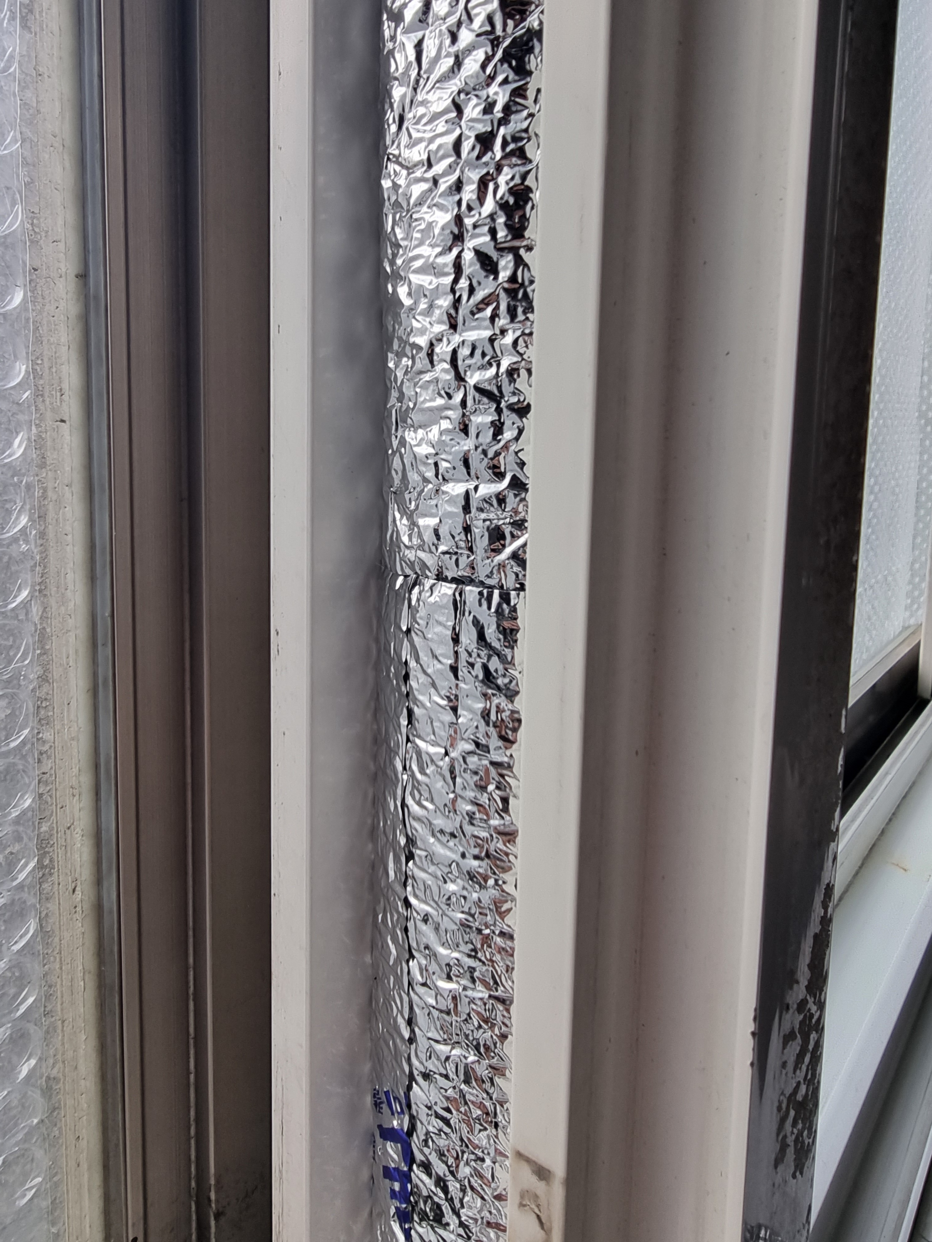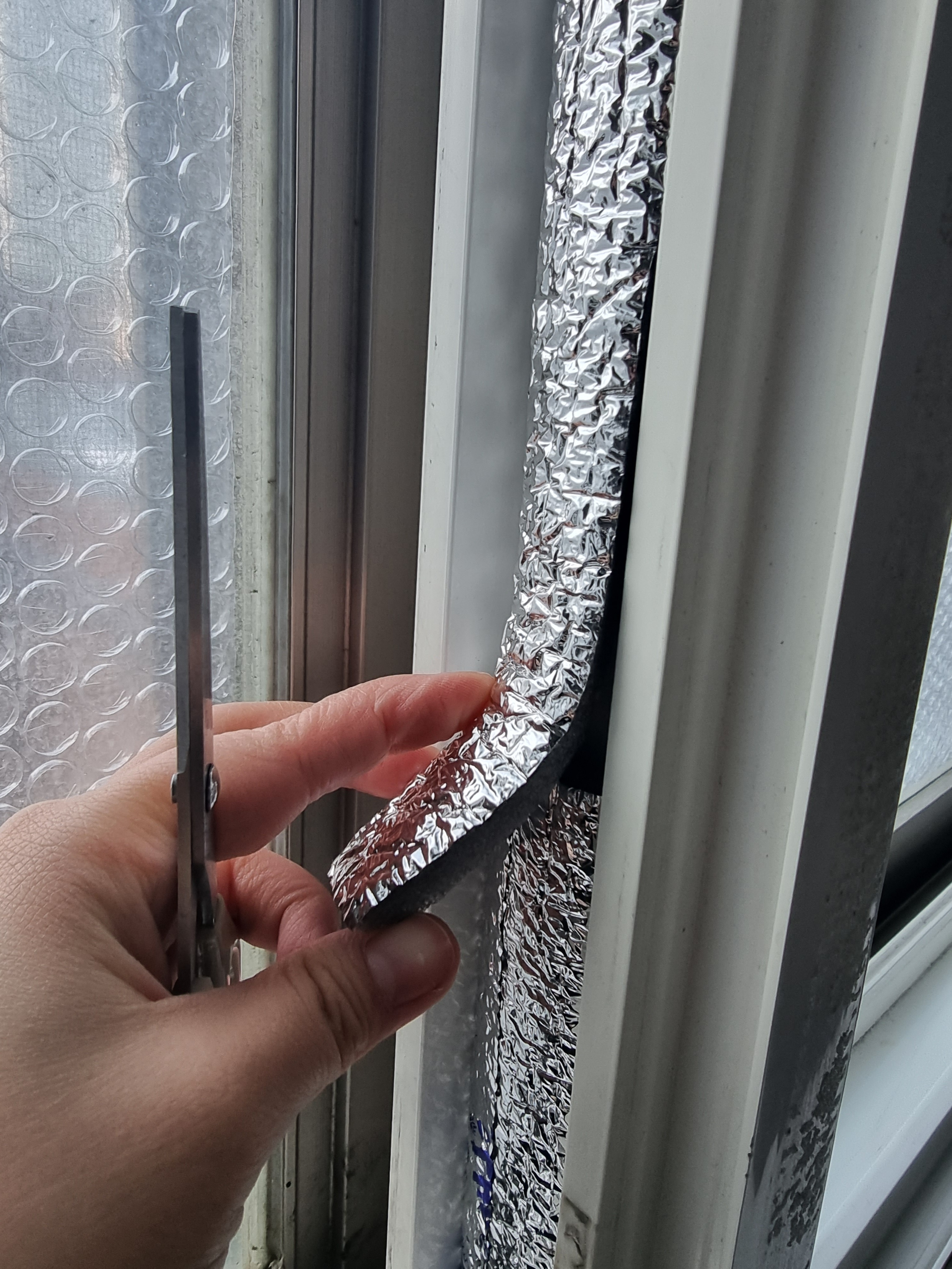 그리고 파이프 보온커버를 냅다 가위로 주우욱 잘라줘