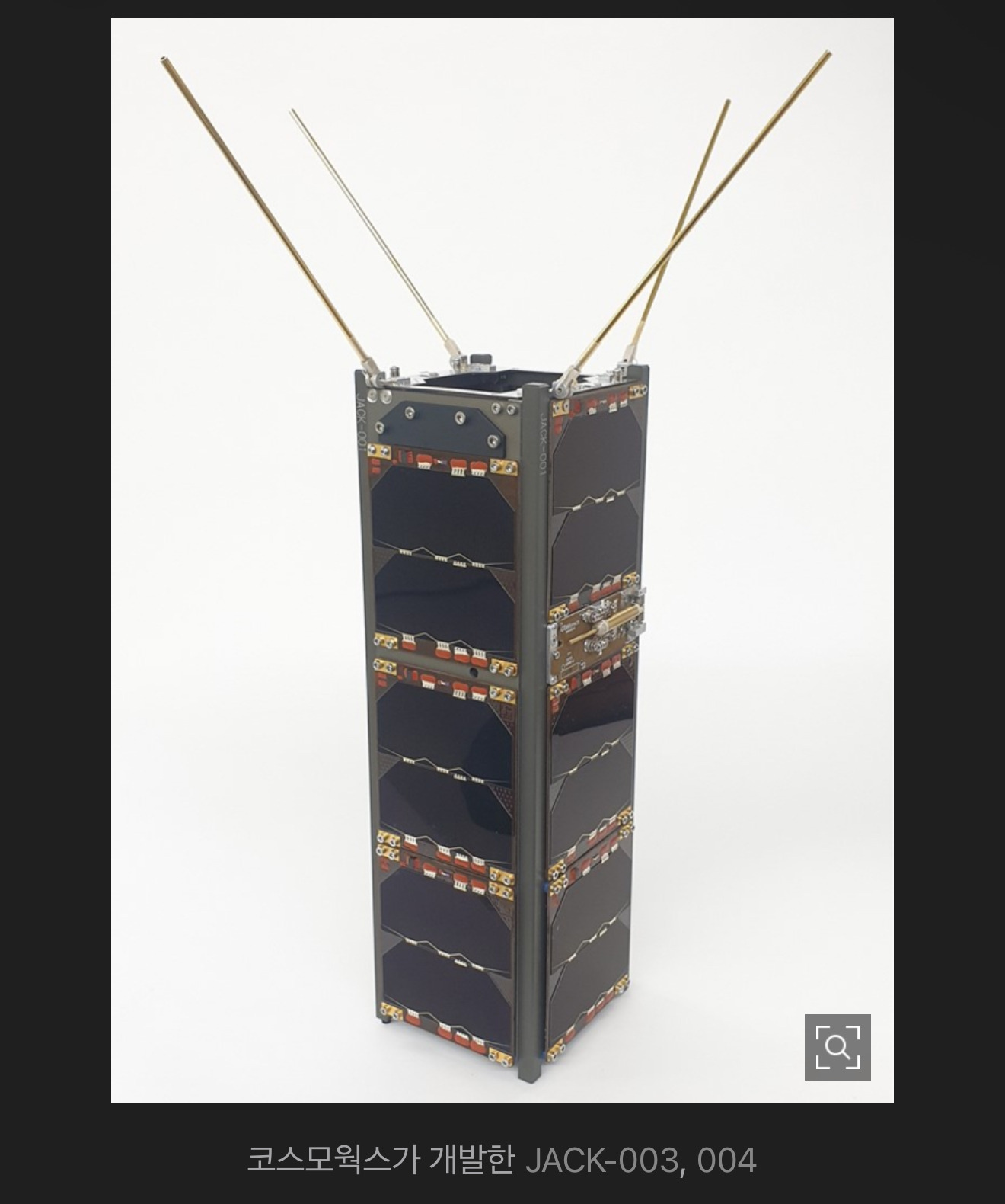 코스모웍스가 개발한 JACK-003, 004는 광학 탑재체로 지구 영상을 획득하는 게 주요 임무다. 코스모웍스는 이번 누리호에 유일하게 2기의 위성을 탑재하는 업체다. 이 과정에서 코스모웍스는 위성 개발과 핵심 모듈 제조 역량을 쌓을 수 있게 됐다. 위성이 촬영한 지구 영상은 기후, 지리, 환경 등 다양한 분야에서 활용할 수 있도록 공공에 개방할 계획이다.