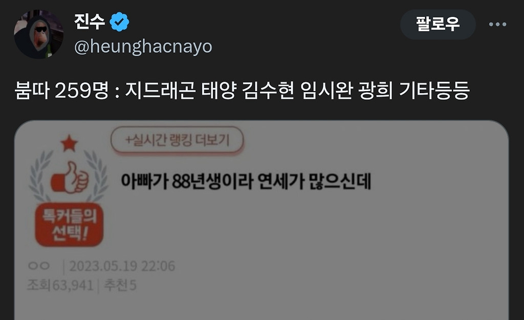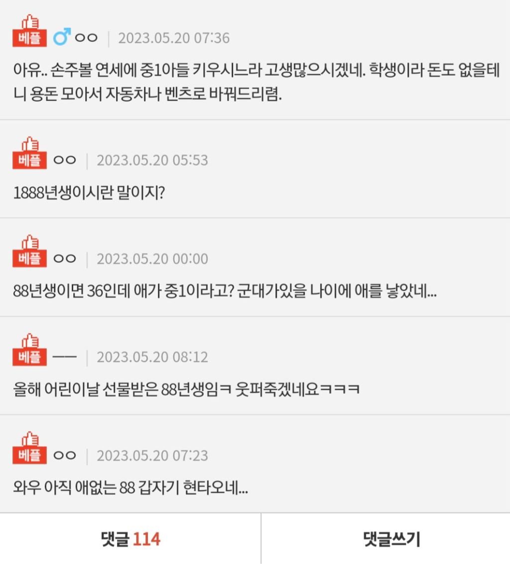 작성자럭키키티 작성시간 25.11.27 걍 네이트판 사람들은 88년생보다 연령대 어린 줄 알고 그런 듯 ㅜㅜㅋㅋㅋㅋㅋ