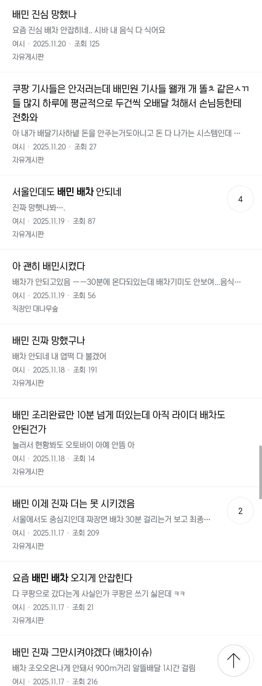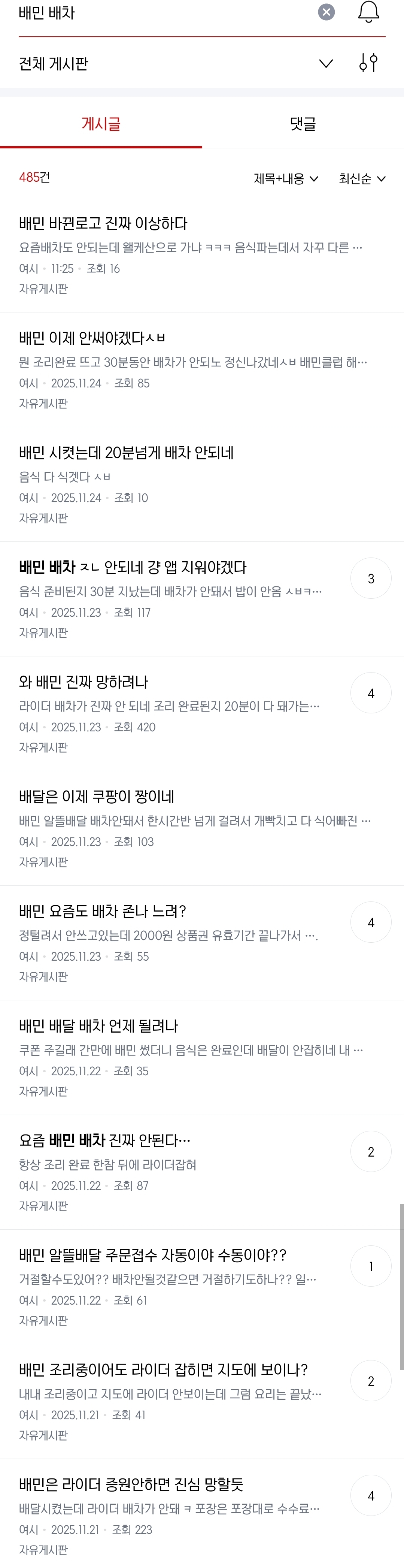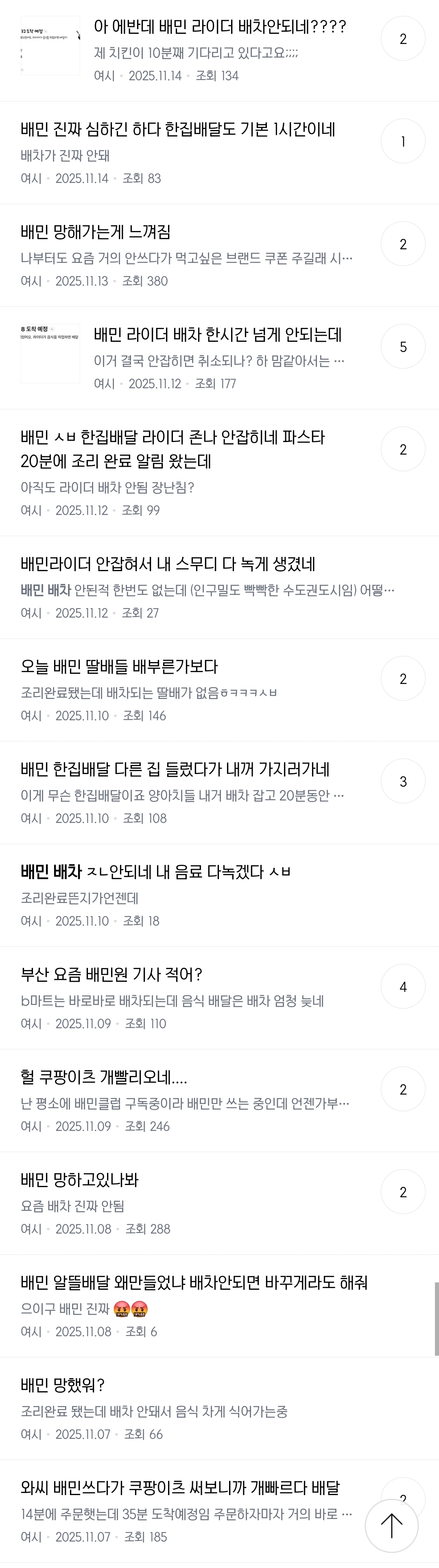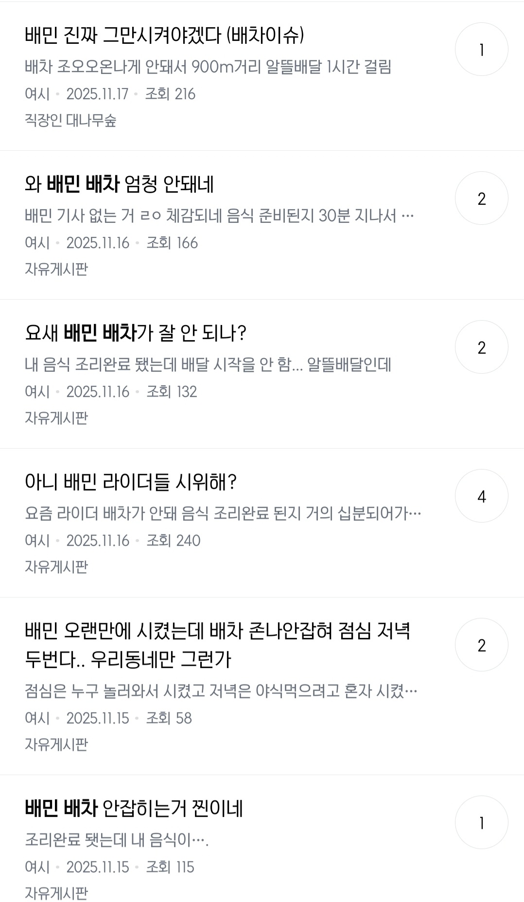 [흥미돋]요즘 진짜 심각하다는 배민1 배달 작성자꿈돌이라면|작성시간25.11.27|조회수51,351 목록 댓글 305 글자크기 작게가 글자크기 크게가 출처: 여성시대 꿈돌이라면 (날짜 보면 다 최근글임)알뜰이고 한집이고 걍 기사가 안잡힘조리완료 후 걍 기본 몇십분 기다려야지겨우 잡히고 삥긇사하다가 다 식어서 옴하루에 2번씩 더하기쿠폰이랑브랜드 쿠폰 계속 뿌리는데 혹하지 말길⋯ 다음검색 현재 게시글 추가 기능 열기 북마크 공유하기 신고 센터로 신고 댓글 댓글 305 댓글쓰기 답글쓰기 댓글 리스트 작성자장미사이에피어난건물 | 작성시간 25.11.30 나만 느낀게 아니었구나… 근데 본문 폰트 뭔지 아는 여시 있나요~? 답댓글 작성자꿈돌이라면 작성자 본인 여부 작성자 | 작성시간 25.11.30 Log정성고딕이어요 답댓글 작성자장미사이에피어난건물 | 작성시간 25.11.30 꿈돌이라면 고마워용 ♥︎ 작성자배고배고파 | 작성시간 25.12.01 땡겨요 어플 넘 좋아ㅜ 작성자아버지는섹시드라이버 | 작성시간 25.12.04 음식 갖다놓지도 않고 배달완료 이거 너무 많이 떠서 이제 잘 안씀 댓글 전체보기
