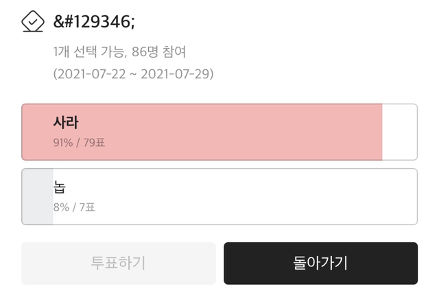 자개에 투표글 올렸는데 86명이나 참여해줌 💕