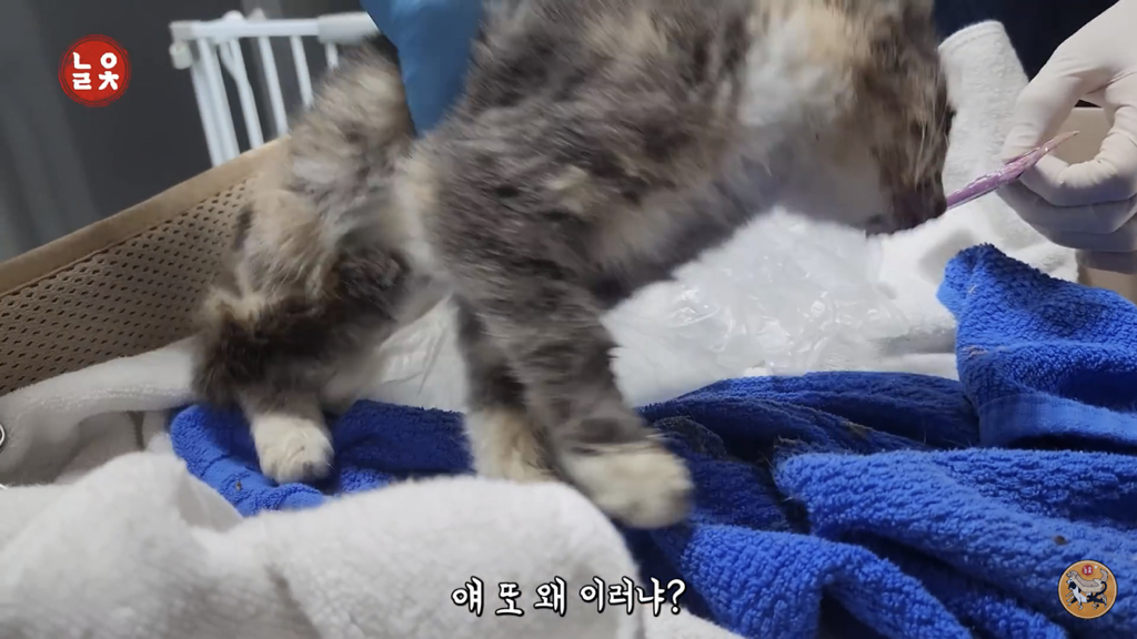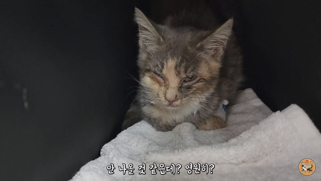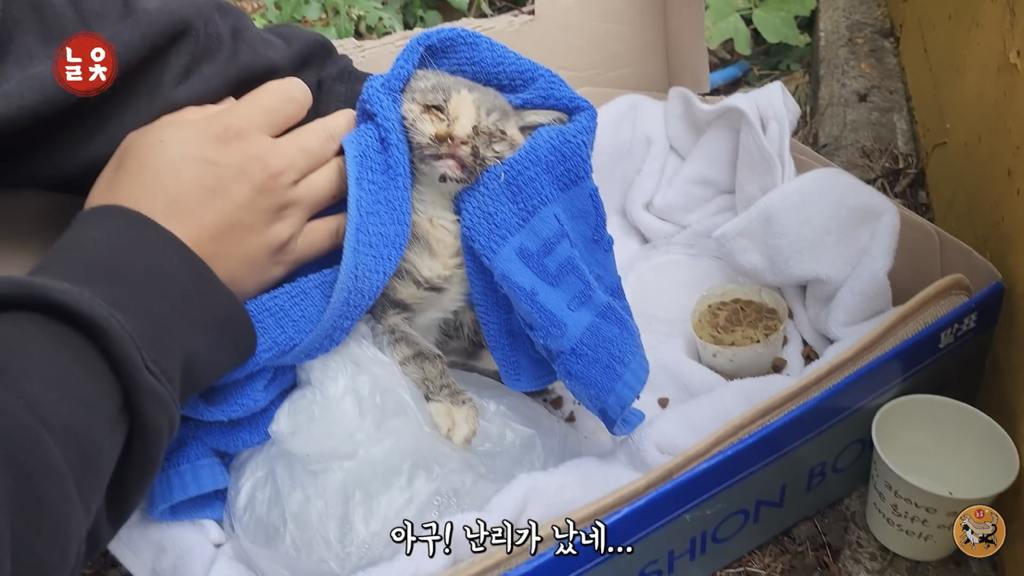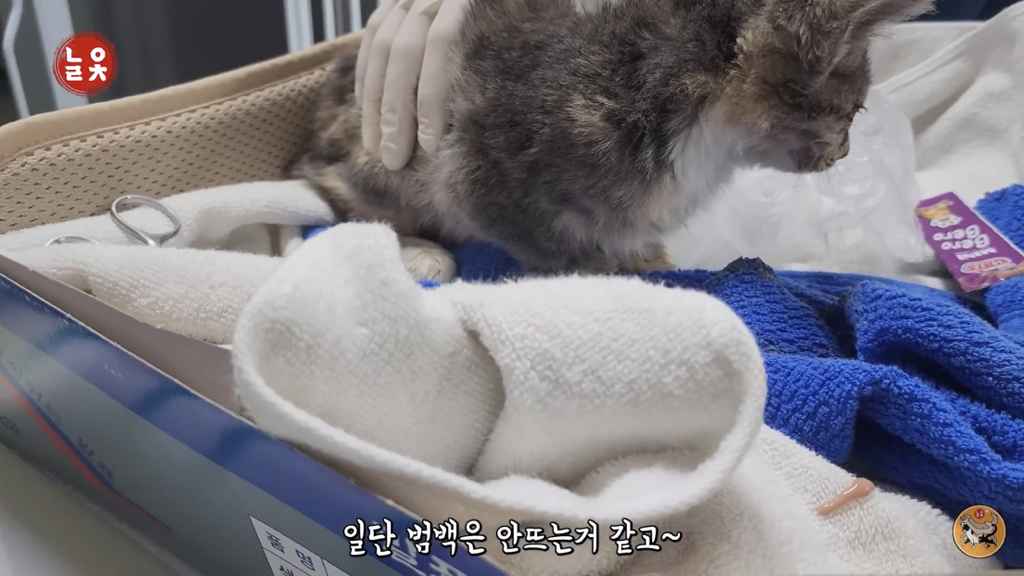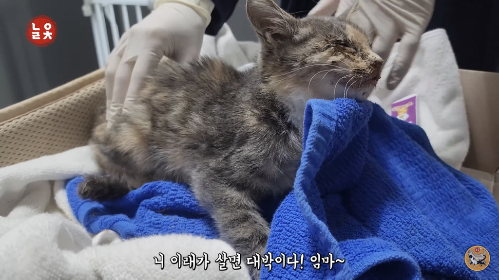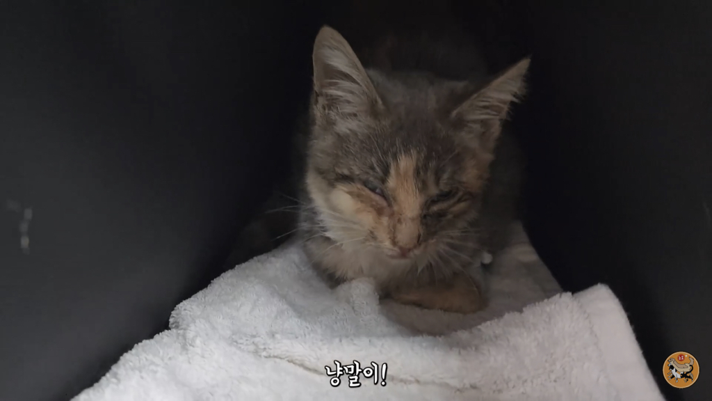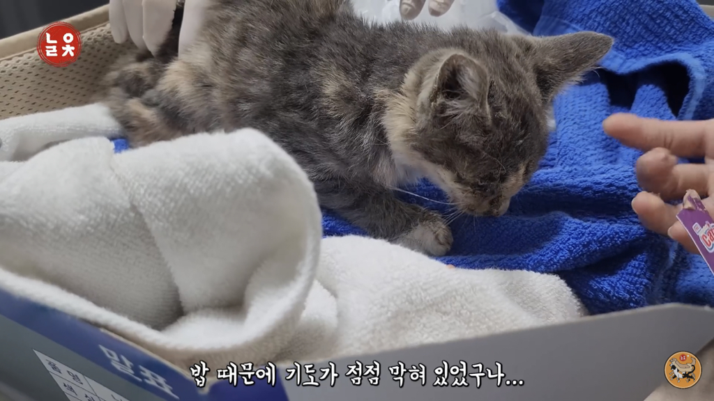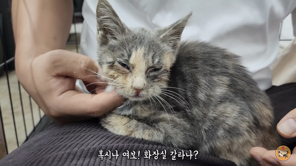 2,3개월 정도로 보이는데 이렇게 어린 고양이는 괜찮아지는 듯 하다가도 하룻밤 사이에 명을 달리하기 때문에….