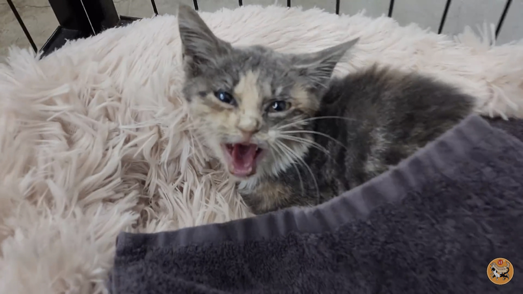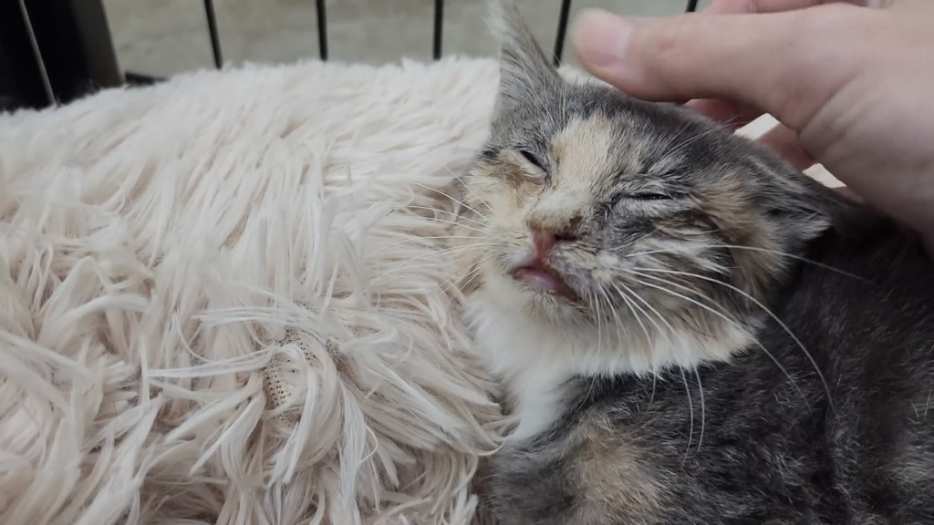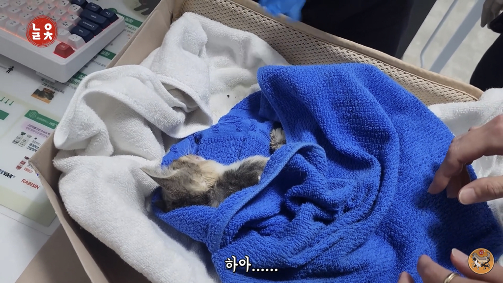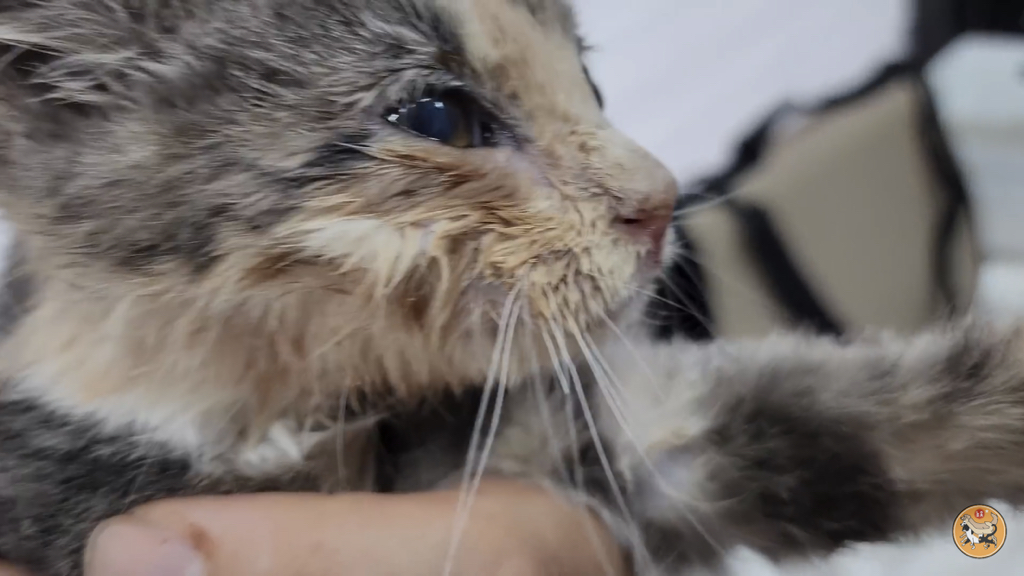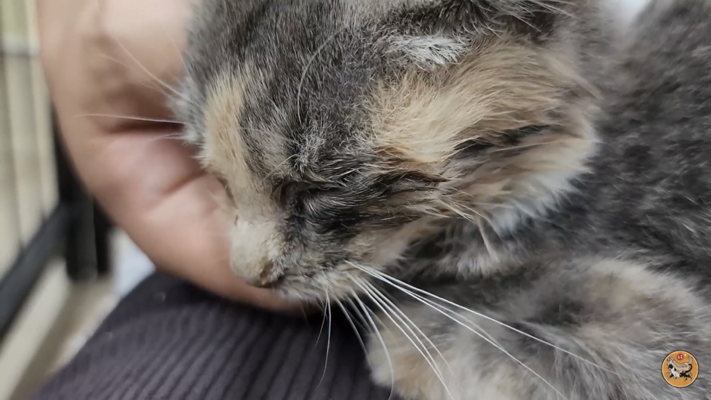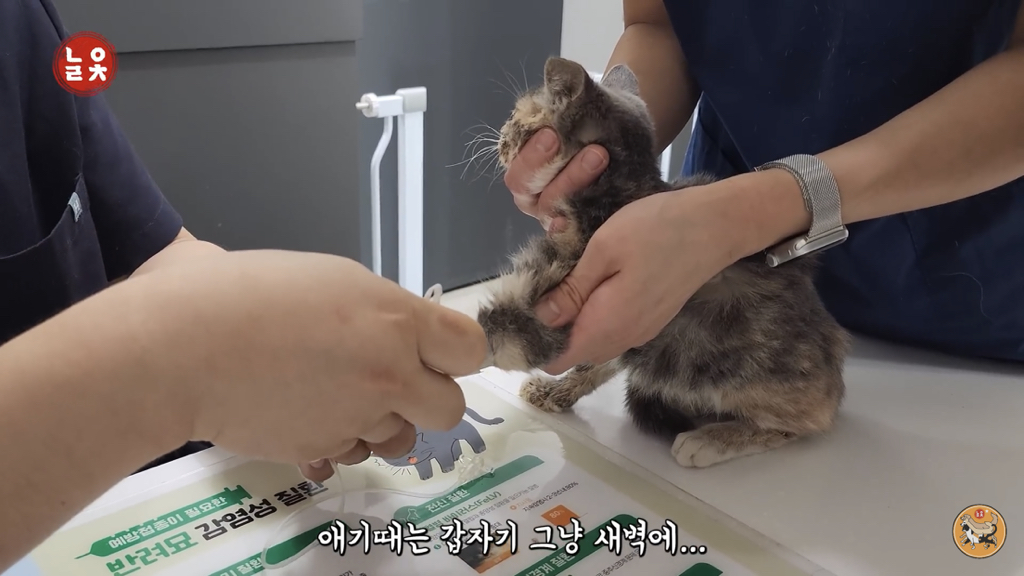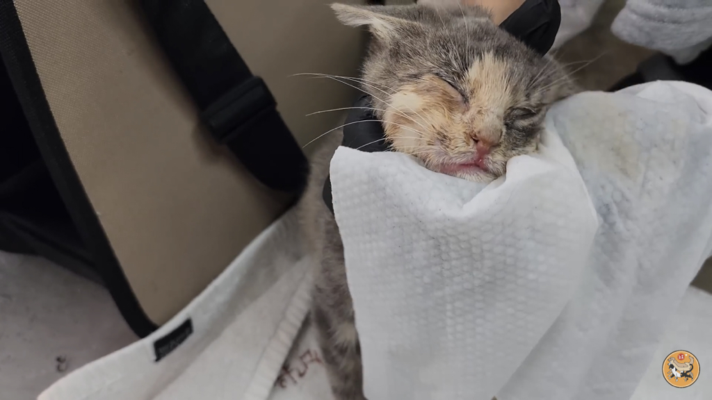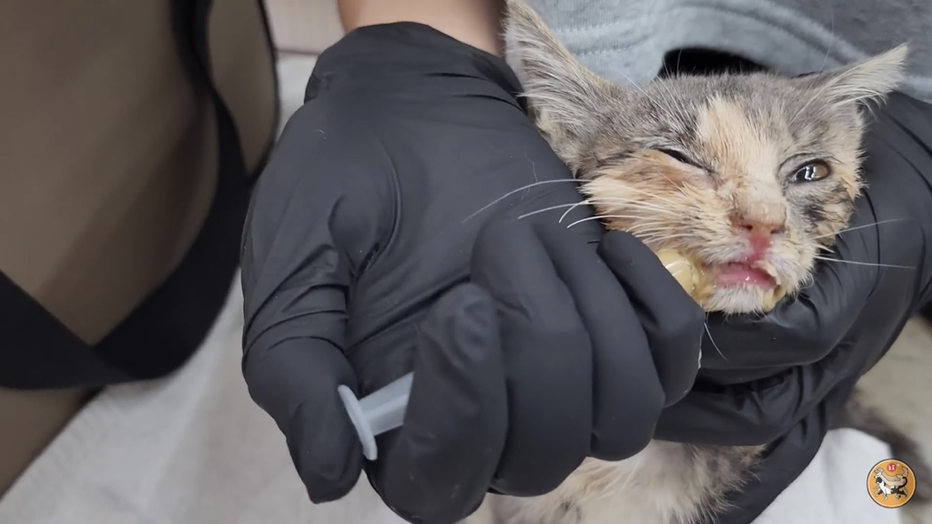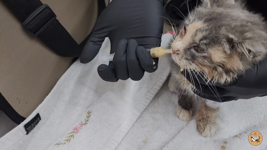 2,3개월 정도로 보이는데 이렇게 어린 고양이는 괜찮아지는 듯 하다가도 하룻밤 사이에 명을 달리하기 때문에….