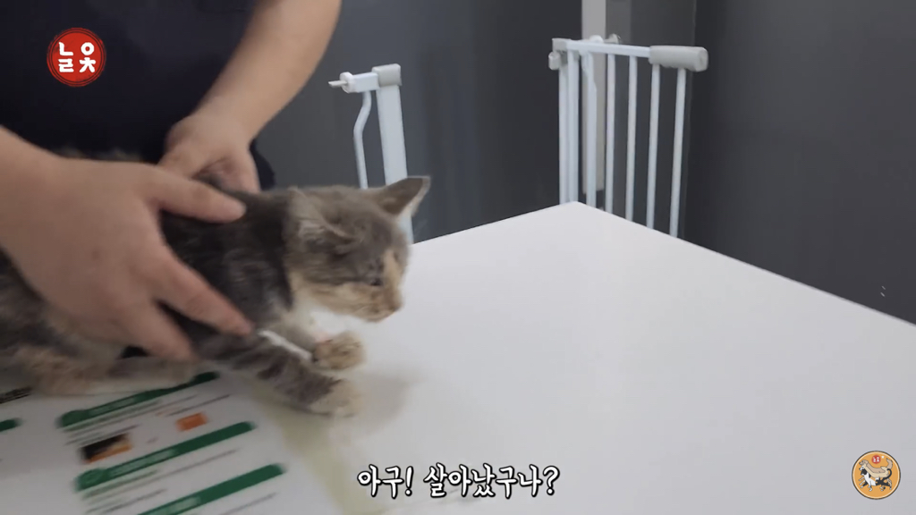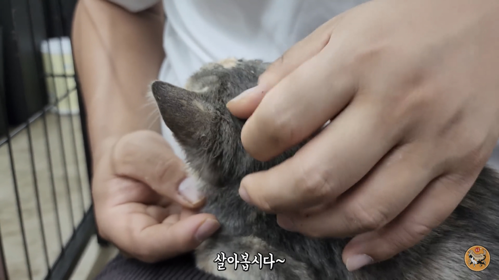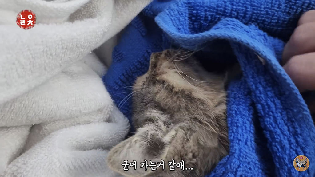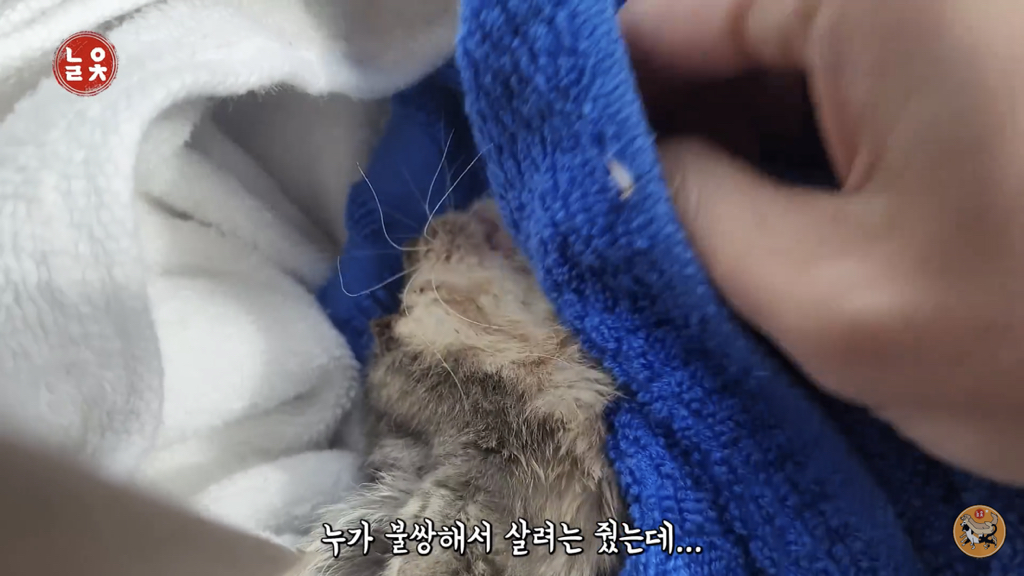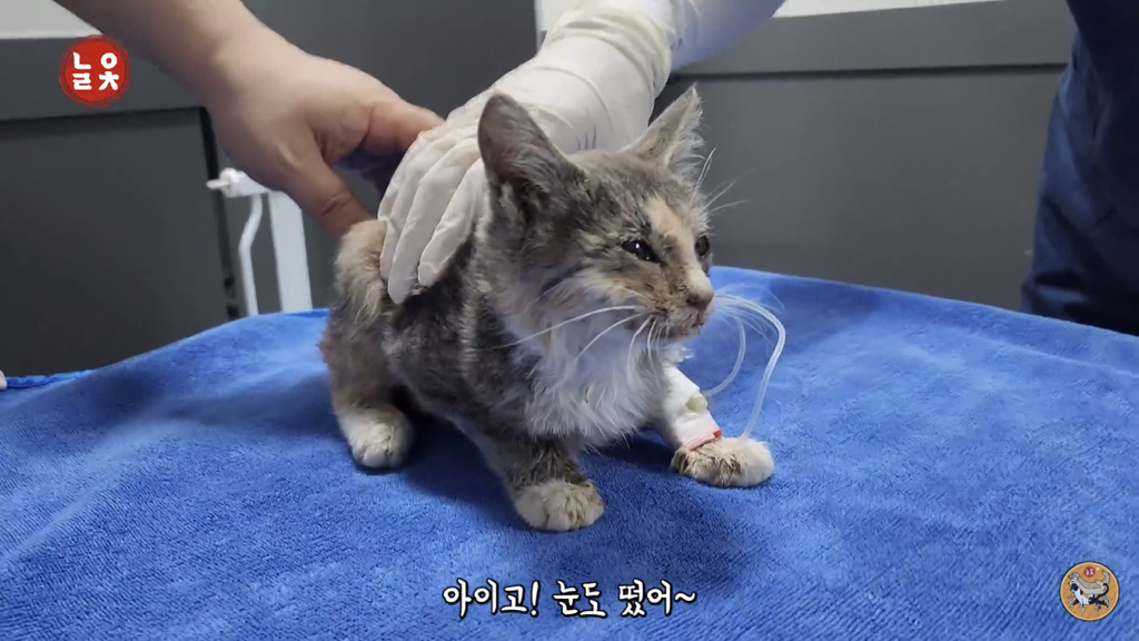도저히 살 것 같지 않은 상태의 작고 마른 고양이