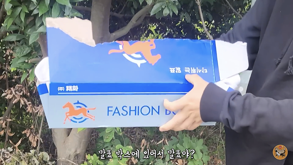 어쩌다 말표 상자에 담겨 차도 옆에서 있었는지 모르겠지만