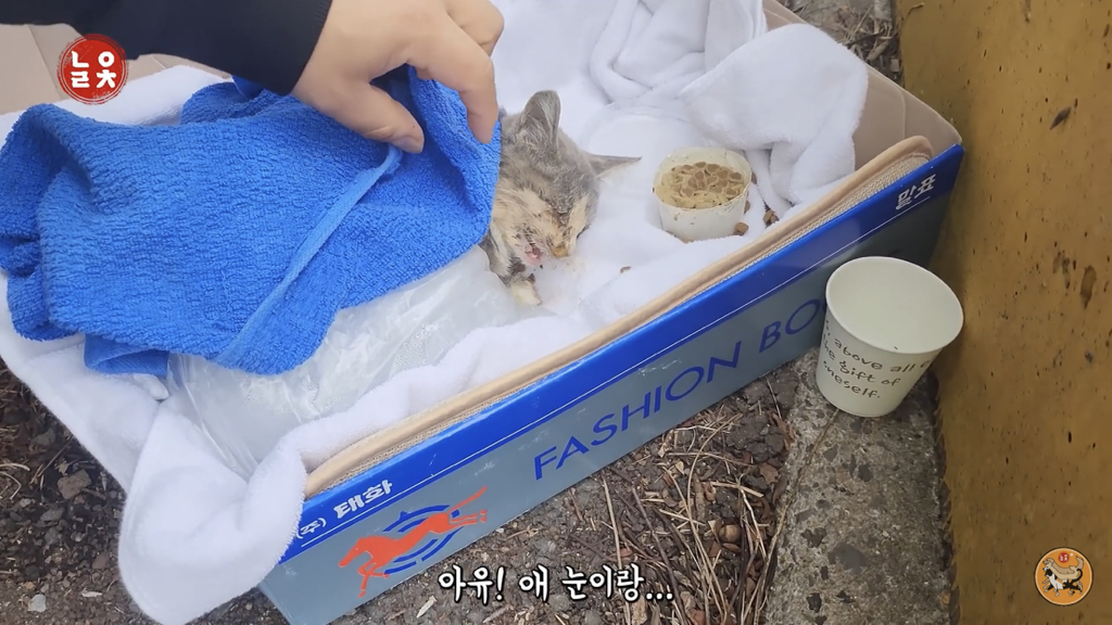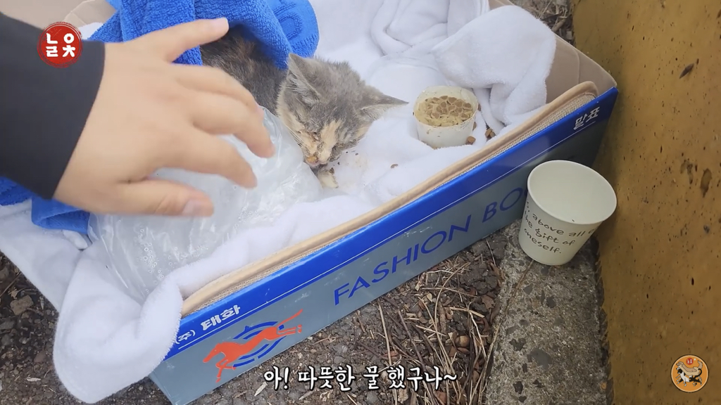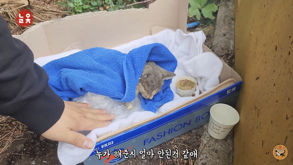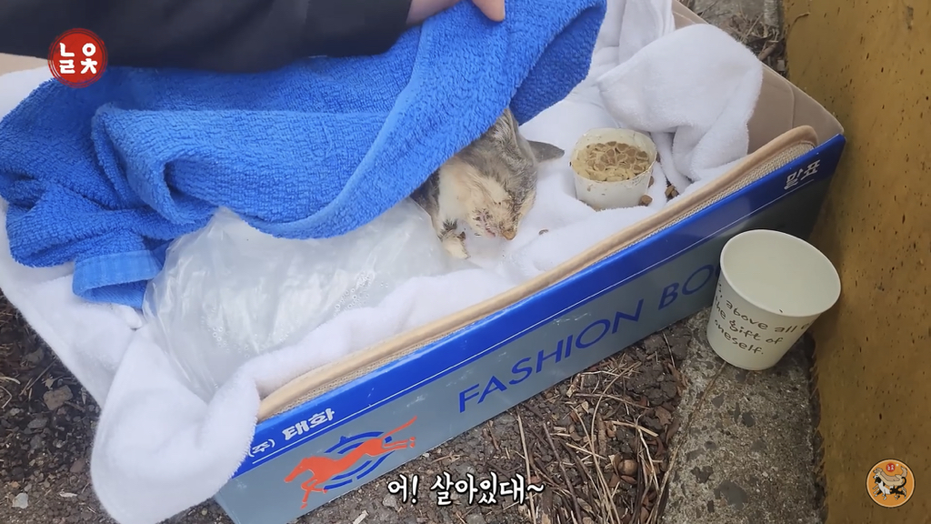 누군가가 고양이가 살았으면 해서 말표 상자에 넣어놨겠지(키우다 유기한 것은 아니었을 것 같음… 아니기를 바라기도 하고)