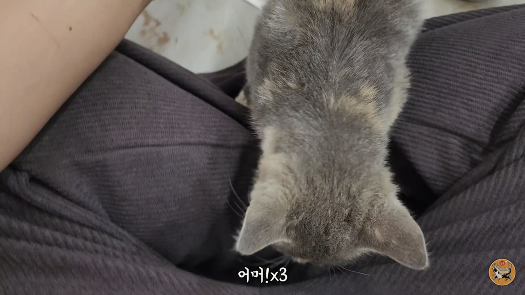 여집사님이 고양이를 계속 마사지 하는데 너무 말라서 뼈밖에 없음