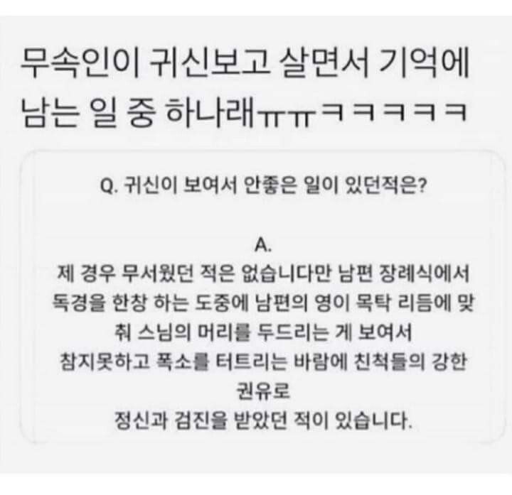 작성자월화술먹굼토웩 작성시간 25.11.28 근데 무당이 귀신 본걸로 정신과 진료 보면
