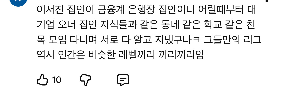 작성자익명_ 작성시간 25.11.28 본인환경에 맞게 끼리끼리 친한거지 뭐 ㅋㅋㅋㅋ 다 그런거 아닌가